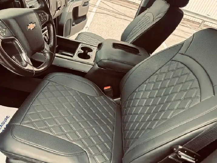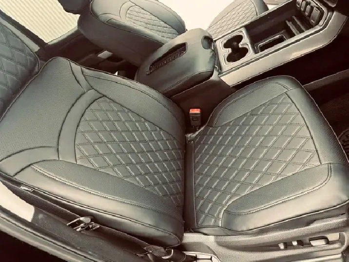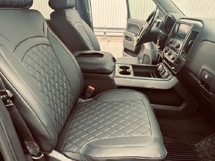 - Seats, front 40/20/40 split-bench, 3-passenger, available in cloth or leather includes driver and front passenger recline with outboard head restraints and centre fold-down armrest with storage. Also includes manually adjustable driver lumbar, lockable storage compartment in seat cushion, and storage pockets. (Leather with (KA1) heated seat cushions and seat backs is an available extra charge option with (H1Y) Jet Black leather appointed interior trim and requires (PCM) LT Convenience Package or (PDU) True North Edition. Includes (AG1) driver 10-way power seat-adjuster with (PCM) LT Convenience Package or (PDU) True North Edition.)