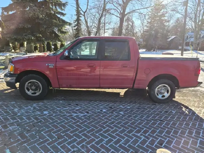 2001 FORD F-150 XLT LARIAT KING RANCH SUPERCREW CAB, 2 WHEEL DRIVE, TRITON 5.4 V8 ENGINE SO GREAT GAS MILEAGE FOR A V8, 235145 KLM. ONE OWNER 80 YEAR OLD SENIOR, SPOTLESS INTERIOR NON-SMOKER AND NO PETS, REAR SEAT WAS NEVER SAT IN, NEVER TOWED ANYTHING OR HAD A HITCH ON IT, CROWN RUST-PROOFED EVERY YEAR, SYNTHETIC OIL CHANGES, SHOULD BE A GREAT TRUCK FOR ANOTHER 25 YEARS IF MAINTAINED PROPERLY, A VERY SOLID TRUCK AND HAVE ALWAYS MAINTAINED MAINTENANCE ON THIS VEHICLE, JUST REPLACED BOTH UPPER CONTROL ARMS WITH NEW BALL JOINTS AND A NEW STABILIZER LINK AND NEW PARKING BRAKE SHOES, GREAT VEHICLE FOR A CONTRACTOR, DELIVERY PERSON, COMMUTER, SENIOR, STUDENT ETC. $7995.00 SAFETIED 519-331-9489, THANKS FOR READING!