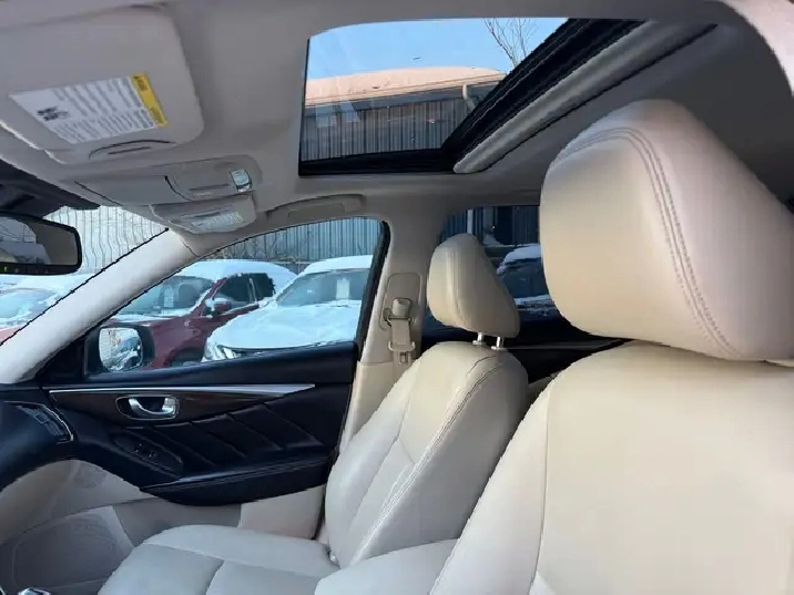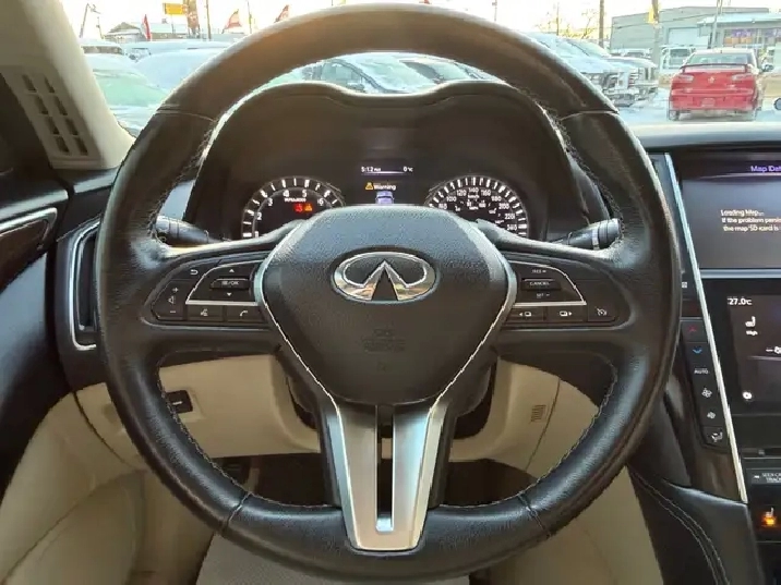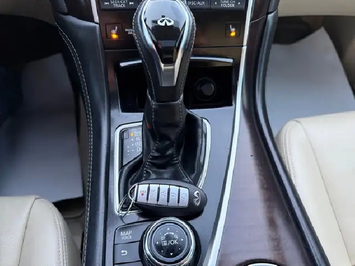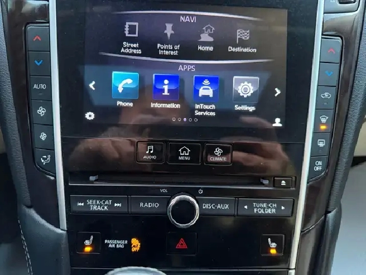 - Radio: INFINITI InTouch Dual Display System -inc: 8" upper and 7" lower VGA LCD touch screens, SiriusXM satellite radio w/90-day complimentary trial, INFINITI InTouch Apps, voice recognition for audio, Bluetooth and vehicle information, including music search by voice, INFINITI controller, AM/FM audio system and single disc in dash CD player, speed sensing volume control, FM diversity antenna (glass mounted), two USB inputs (plays music from a compatible iPhone, flash drive or any other compatible mass storage device), Bluetooth streaming audio, Bluetooth hands-free phone system w/hands-free text messaging assistant, aux input and video input (RCA type), SMS/email display function, INFINITI InTouch navigation w/lane guidance and 3D building graphics, InTouch services (1-year of safety, security and convenience services), voice recognition for navigation functions, including one-shot voice destination entry, SiriusXM Traffic including real-time traffic information (90 days) and 6 speakers