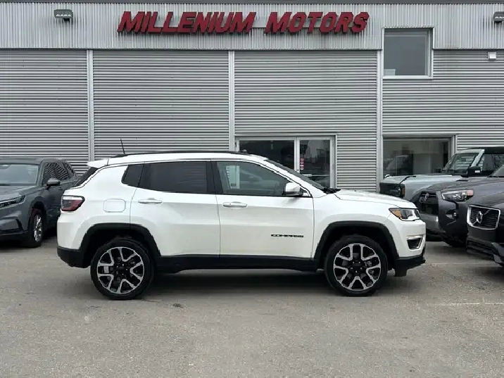 2018 JEEP COMPASS LIMITED 4X4 SUV, 2.4L MULTIAIR 4-CYLINDER AUTOMATIC, WHITE EXTERIOR WITH FULL BLACK LEATHER INTERIOR, EQUIPPED WITH NAVIGATION ,BACK-UP CAMERA, PANORAMIC SUNROOF, KEYLESS ENTRY WITH PUSH BUTTON START, REMOTE STARTER, DRIVERS ASSISTANCE PKG, HEATED FRONT SEATS - DRIVERS MEMORY, HEATED LEATHER STEERING WHEEL, POWER LOCKS/MIRRORS/TAILGATE AND WINDOWS, AIR CONDITIONING, PREMIUM BEATS AUDIO WITH SXM RADIO, BLUETOOTH, USB AND AUX INPUT, 19in. ALLOY WHEELS, AUTO STOP-START, PARK ASSIST, TRACTION AND CRUISE CONTROL,TELESCOPIC STEERING, FOG LAMPS, PRIVACY GLASS AND MORE. CARFAX AVAILABLE UPON REQUEST, THIS PREMIUM 4X4 IS IN GREAT SHAPE. CONTACT US DIRECTLY @ 403-735-6050 TO BOOK YOUR TEST DRIVE OR FOR ANY FURTHER DETAILS. STOCK # 209857