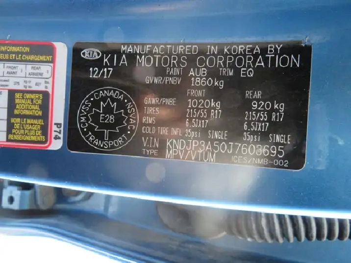 - Tires: P215/55R17 -inc: tire mobility kit