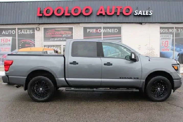 DO NOT PAY EXTRA FOR SAFETY 5.6L V8 GAS The Nissan Titan Leaves No Room For Compromise When It Comes To Safety. Equipped With Cutting-Edge Features, Including Advanced Airbags, Stability Control, And A Reinforced High-Strength Steel Frame, It Provides Peace Of Mind For You And Your Loved Ones. Take Command Of The Road With Confidence, Knowing That Ram's Commitment To Safety Is Second To None. --------------------------------------- Finance it for as low as $126/ Weekly (Plus HST) with $0 down payment @ 6.99% interest rate, for 84 Months O.A.C. --------------------------------------- Fully Loaded with: Apple Carplay, Android Auto, Power Windows, Locks, Mirrors, CD/ AUX, AC/ Dual Climate Control, Bluetooth, Parking Sensors, Navigation System, Rear View Camera, Remote Starter, Heated Seats, Heated Steering Wheel, Remote Starter, Push to Start, Alloys, ALL THE POWER OPTIONS!! --------------------------------------- --------------------------------------- Our knowledgeable sales team is available to answer any questions. We also welcome trade-ins, with on-site buyers available to estimate your vehicle on the same day. --------------------------------------- Additionally, our vehicles qualify for up to 4 years of extended warranty. Please speak to your sales representative for more information -------------------------------------- Visit us at 610 Martin Street, Milton, L9T 3H6 or call us at 905-901-3161 for more information. --------------------------------------- Experience why Looloo Auto Sales is leading in crowd favorites!