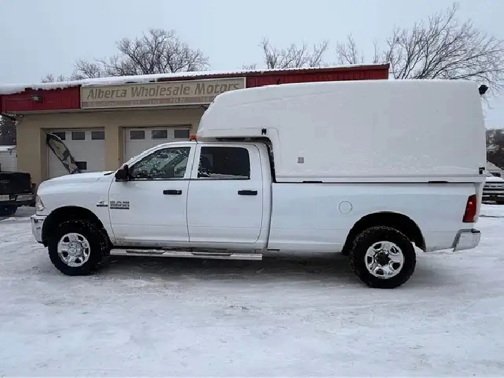 2018 DODGE RAM 3500 HEAVY-DUTY CREW CAB WITH SPACEKAP CANOPY WITH SHELF 4X4 8 FT LONG BOX 6.7 LITRE CUMMINS TURBO DIESEL 6 SPEED AUTOMATIC TRANSMISSION 1 OWNER LEASE BACK POWER WINDOWS POWER LOCKS AM FM SAT STEREO TILT CRUISE TRAILER TOW PACKAGE REMOTE START TINTED WINDOWS ALLOY WHEELS 15 SERVICE RECORDS ON CARFAX 108034 KMS VERY LOW KMSTRUCK LOOKS AND DRIVES LIKE NEW EXCELLENT SERVICE TRUCK CARFAX WARRANTY FINANCING AVAILABLE CALL OR VISIT ALBERTA WHOLESALE MOTORS 9116-111 AVE 780 474-3022 OR TEXT BOB 780 970-2526