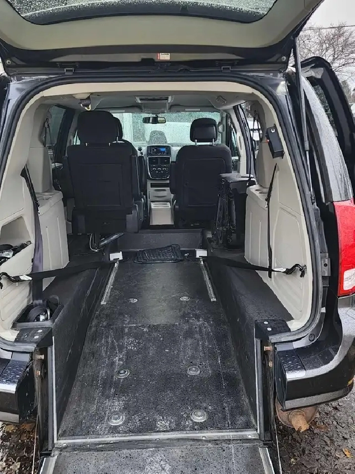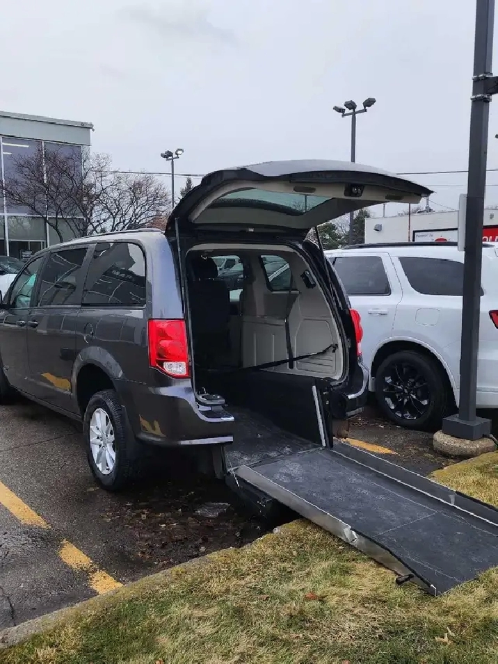2018 Beautiful Rear Entry Dodge Grand Caravan Wheelchair Accessible Van $33,000 GST included. Features, electronic Q-restraint wheelchair tie-downs, flip down and overseats, backup camera, DVD entertainment system, Trip zone heat and cooling, Command start, power seat, telescopic tilt steering wheel, cruise control air conditioning. 115 volt PowerPoint.
