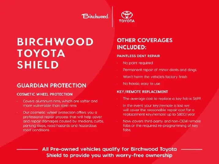 This vehicle qualifies for Birchwood Toyota Shield, which includes: