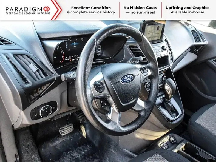 Under the hood, the Transit Connect offers a fuel-efficient 2.0L 4-cylinder engine paired with an 8-speed automatic transmission, giving you smooth performance and excellent fuel economy for daily routes. Its tight turning radius and car-like handling make it easy to navigate crowded streets, while still providing the capability required for commercial use.