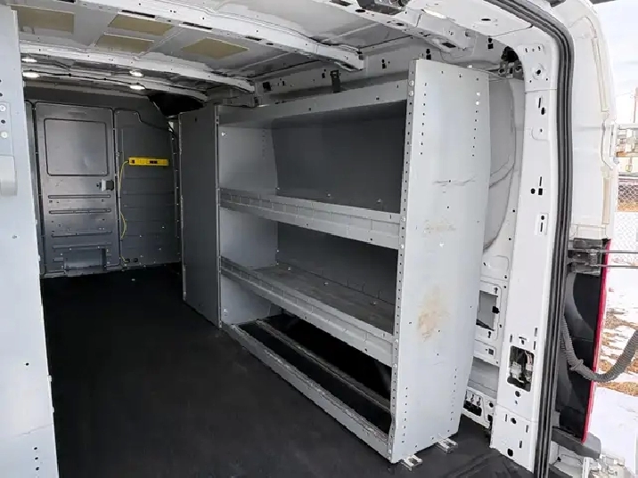 CAN FINANCE or LEASE, 2019 TRANSIT CARGO VAN, $6,000 UPFITTED 8600 GVW, Super Clean White Exterior with High back Grey POWER/HEATED !! Captain Chairs, Well Optioned With, Divider, SHELVING , Factory Air, Tilt, Cruise, Power Windows, Power Doorlocks, Power Mirrors, Bluetooth, Sliding Side Door, Double Rear Doors, Good Tires, AMVIC Safety, Only 113,000k !!! , WHOLESALE Priced at $29,900 . CALL 403-612-1646 For Appointment to View. SELLING WHOLESALE To The Public Since 1984, Always a NICE Selection Of Cube and Cargo Vans in Stock. To VIEW ALL Inventory, Google Search (Ironhorse Productions on Cardb.ca )