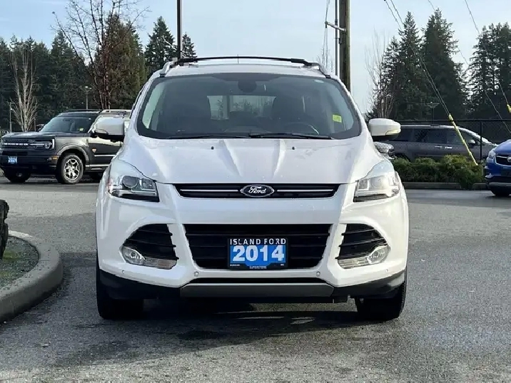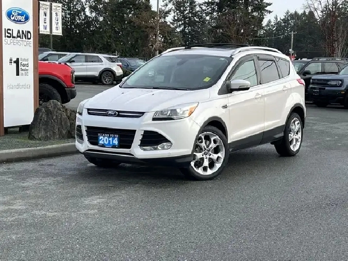 AWD confidence, 2.0L EcoBoost power, leather seating, MyFord Touch, and reverse camera define this well-equipped Titanium compact SUV. The 2014 Ford Escape Titanium is a gasoline compact SUV that blends responsive turbocharged performance with upscale comfort and smart technology. Its 2.0L EcoBoost engine and AWD system deliver confident all-weather capability, while the refined interior features leather seating, a power driver seat with lumbar support, and intuitive infotainment. Advanced safety tech and convenience features make this Escape a strong value for drivers seeking versatility, efficiency, and premium touches in a compact crossover. Key Features: 2.0L EcoBoost gasoline engine All-Wheel Drive (AWD) 6-speed SelectShift automatic transmission Leather seating surfaces Power driver seat with lumbar support MyFord Touch system Reverse camera system Reverse sensing system Blind Spot Detection System (BLIS) Automated parking system Dual-zone electronic automatic climate control Intelligent Access with push-button start (MyKey) Heated power mirrors with turn signal indicators Remote vehicle start Rear spoiler 2014 Ford Escape Titanium As BC's #1 rated dealer, we guarantee unbeatable trade-in values, payments, and prices on all our vehicles. Found a better offer? Bring us an official quote, and well beat it. Whether you have no credit, bad credit, or are in the process of rebuilding your credit, allow our finance specialists to assist you in finding the perfect vehicle. For mainland customers, we cover your BC Ferries fare with the purchase of a vehicle. Price is plus $899 Documentation Fee and is subject to additional government levies, PPSA fees, and applicable taxes. Prices, product specifications, and other information shown on this site are for informational purposes only, subject to change at any time without obligation, and may not be completely up to date or accurate. While we strive to ensure the accuracy of our inventory listings, human error may occur. Dealer #40142. Learn more at www.islandford.ca.
