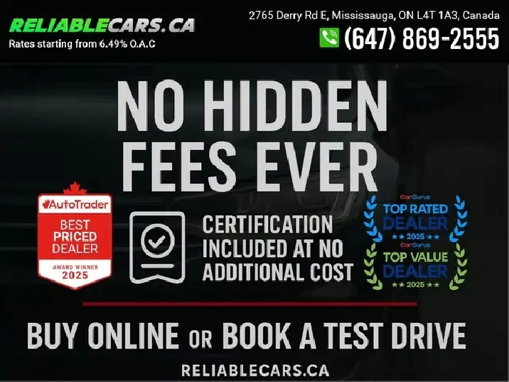 Financing - Our team specializes in financing Students, Work Permits, New Comers, Good or Bad Credit. Rates starting from 6.99% with $0 Down O.A.C. We work with all major banks and lenders to get you a car loan with the lowest interest rates and flexible terms. Click here to get pre approved today!: https://www.reliablecars.ca/finance/