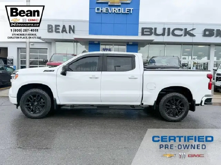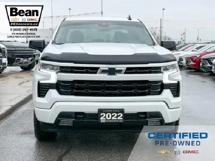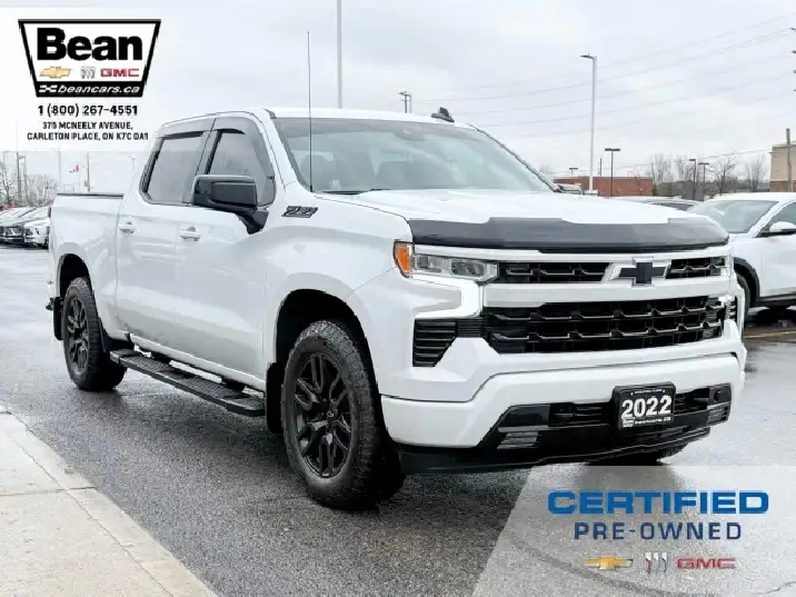 Originally purchased new and always serviced at our dealership, this 2022 Chevrolet Silverado RST looks super sharp and is built for adventures as much as work! It comes equipped with the 5.3L V8 engine, Z71 off road package as well as a trailering package. It also has the Convenience Package which includes dual zone air conditioning, 10 way power driver seat, heated driver and passenger seats, heated leather wrapped steering wheel and a manual tilt/telescoping steering wheel. Onboard there is the Chevy Safety Assist Package which includes automatic emergency braking, front pedestrian braking, lane keep assist with lane departure warning, following distance indicator, forward collision alert and Intellibeam headlamps. On the outside you will find a colour matched front grille as well as front and rear bumpers, black assist steps as well as gorgeous 20 gloss black alloy wheels! This truck is ready for work or play!