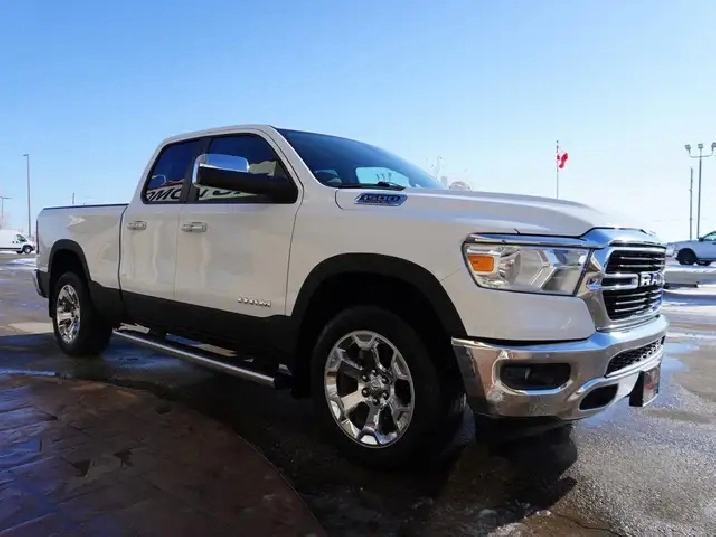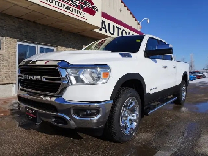 THIS 2019 RAM 1500 BIG HORN QUAD CAB 4X4 delivers the perfect mix of strength, technology, and everyday usability. Paired with a smooth 8-speed automatic transmission, it offers confident towing capability while staying comfortable and composed for daily driving. Finished in Bright White with a Black and Diesel Grey interior, this truck is built for workdays, weekends, and everything in between. Clean, well-equipped Big Horns like this do not sit.