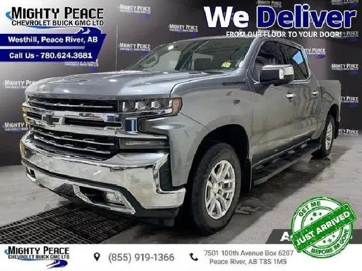 Leather Seats, Advanced Trailering Assist, Heated Seats, Remote Start, Aluminum Wheels, Apple CarPlay, Android Auto, LED Lights, Heated Steering Wheel, Teen Driver Technology, Power Seat, Streaming Audio, 4G LTE, HD Rear View Camera Your GM King of the North since 1969! We Deliver! From Our Floor to Your Door! Hot Deal! We've marked this unit down $2950 from its regular price of $44850. A versatile bed and a smartly designed interior make this Chevrolet Silverado the ultimate workhorse. This 2020 Chevrolet Silverado 1500 is fresh on our lot in Peace River. The Chevy Silverado 1500 is functional and ergonomic, suited for the work-site and or family life. Bold styling throughout gives it amazing curb appeal and a dominating stance on the road, while the it's smartly designed interior keeps every passenger in superb comfort and connectivity on any trip. With brawn, brains and reliability, this pickup was built by truck people, for truck people, and comes from the family of the most dependable, longest-lasting full-size pickups on the road. This sought after diesel Crew Cab 4X4 pickup has 71,433 kms. Stock number 26-020A is silver in colour and is completely accident free based on the CARFAX Report. It has an automatic transmission and is powered by a 3.0L I6 24V DDI DOHC Turbo Diesel engine. It may have some remaining factory warranty, please check with dealer for details. Our Silverado 1500's trim level is LTZ. Upgrading to this Silverado LTZ is a great choice as it comes loaded with features like unique aluminum wheels, perforated leather seats that are heated, a large 8 inch touchscreen with Apple CarPlay, Android Auto, Chevrolet MyLink, bluetooth streaming audio, remote engine start and keyless entry plus an EZ-Lift tailgate. Additional premium features also include signature LED lights, a leather wrapped heated steering wheel, cruise control, steering wheel audio controls, LED cargo lights, an HD rear vision camera, teen driver technology, LED fog lights and 4G LTE hotspot capability plus much more. To apply right now for financing use this link: https://www.mightypeacegm.ca/finance-application/ Our AMVIC licensed business is conveniently located at 7501 100th Avenue in Peace River, AB, and we feature a wide array of models to choose from. At Mighty Peace Chevrolet Buick GMC Ltd., not only do we offer a wide selection of pre owned vehicles to choose from, we also provide our customers with a GM Certified service and repair center. Book your test drive with one of our knowledgeable sales staff by calling (780) 624-3681. Vehicle pricing offer shown expires 2025-12-31. Come by and check out our fleet of 40 used cars and trucks and 100 new cars and trucks for sale in Peace River. o~o
