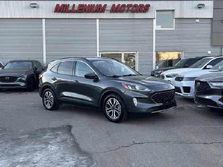 2020 FORD ESCAPE SEL ECOBOOST SUV. AUTOMATIC, GREY EXTERIOR WITH BLACK LEATHER INTERIOR, EQUIPPED WITH NAVIGATION - APPLE CARPLAY ANDROID AUTO, BACK-UP CAMERA, DRIVERS ASSISTANCE PKG, KEYLESS ENTRY WITH PUSH BUTTON START, REMOTE START, HEATED FRONT SEATS-DRIVERS POWER, HEATED STEERING WHEEL, POWER LOCKS/MIRRORS AND WINDOWS, A/C, PREMIUM AUDIO, SXM RADIO, BLUETOOTH, 18in. ALLOY WHEELS, AUTO STOP/START, ECO MODE, CRUISE AND TRACTION CONTROL, TELESCOPIC STEERING, FOG LAMPS, PARK ASSIST, PRIVACY GLASS AND MORE. JUST ARRIVED INTO INVENTORY. DEALER SERVICED WITH A CLEAN HISTORY. CARFAX AVAILABLE UPON REQUEST, CONTACT US DIRECTLY @ 403-735-6050 TO BOOK YOUR VIEWING OR FOR ANY FURTHER DETAILS. STOCK # A41149