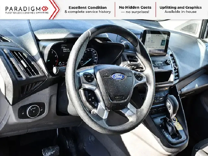 Under the hood, the Transit Connect offers a fuel-efficient 2.0L 4-cylinder engine paired with an 8-speed automatic transmission, giving you smooth performance and excellent fuel economy for daily routes. Its tight turning radius and car-like handling make it easy to navigate crowded streets, while still providing the capability required for commercial use.