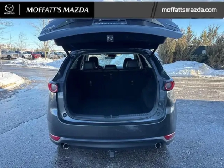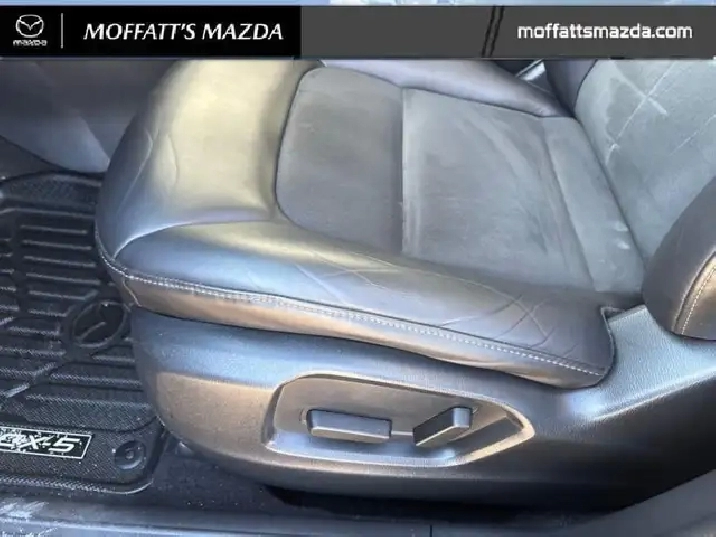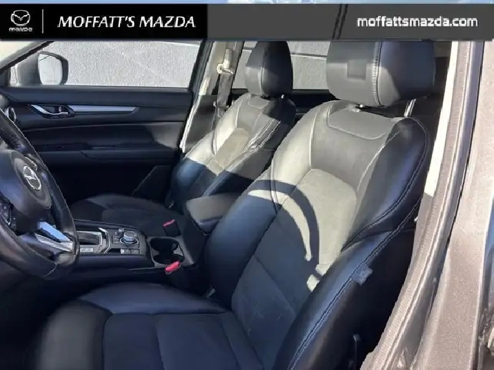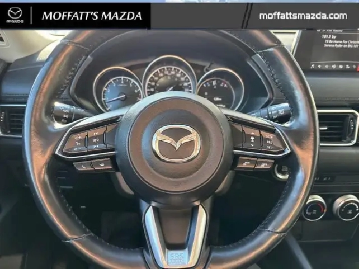 Our CX-5's trim level is GS AWD. Stepping up to this all wheel drive CX-5 GS is a great choice as you will get improved features like a power liftgate, heated steering wheels, stylish aluminum wheels, advanced blind spot monitoring, heated seats on synthetic leather upholstery and a large touch screen display with MAZDA CONNECT, Apple CarPlay and Android Auto. Additional luxurious features includes a LED lighting, a multifunction steering wheel with built-in distance pacing cruise control, lane departure warning and lane keep assist, automatic high beam assist, a wide angle rearview camera, rear collision warning and a proximity key for push button start. This vehicle has been upgraded with the following features: Synthetic Leather Seats, Power Liftgate, Heated Seats, Heated Steering Wheel, Apple CarPlay, Android Auto, Aluminum Wheels.