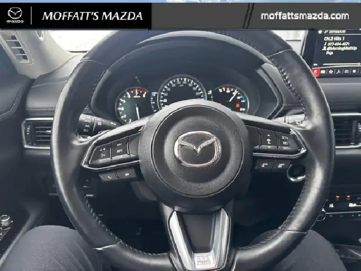 Our CX-5's trim level is GT Turbo. This GT CX-5 has just about everything you could imagine with a power moonroof, navigation, head-up display, air cooled leather seats, wood and metal trim, premium Bose sound, driver seat memory settings, proximity entry, SiriusXM, adaptive front lighting, HomeLink remote system, automatic climate control, and LED lighting with fog lights. This trim also adds traffic sign recognition to the driver assistance features like stop and go adaptive cruise, full range active braking assist, pedestrian detection, forward obstruction warning, lane keep assist with departure warning, and high beam control help make every drive more safe and less fatiguing. For even more comfort, you get heated seats, heated steering wheel, power liftgate, advanced blind spot monitoring, 7 inch Mazda Connect enabled touchscreen, Apple CarPlay and Android Auto. This vehicle has been upgraded with the following features: Head-up Display, Navigation, Cooled Seats, Sunroof, Woodgrain Trim, Leather Seats, Memory Seats.