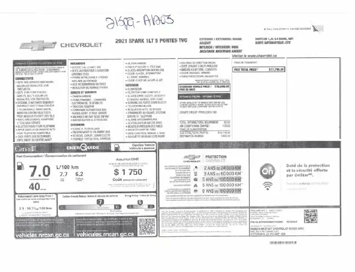 *** TEXTEZ-NOUS AU 819-801-5001 (TROIS-RIVIÈRES) 819-805-2929 (SHAWINIGAN) POUR UNE RÉPONSE RAPIDE *** Le Chevrolet Spark 1LT incarne l'esprit vif et urbain d'une citadine moderne, offrant une combinaison parfaite de compacité, d'efficacité et de style. Cette petite voiture est conçue pour se faufiler habilement à travers les rues animées de la ville tout en offrant un intérieur confortable et des fonctionnalités intelligentes. *** 1LT Automatique A/C Caméra *** 650 véhicules disponibles sur place inspectés et garantis *** le meilleur choix au Québec *** Osez comparer chez Gervais Auto! Une entreprise familiale depuis plus de 50 ans. Inventaire complet sur le www.gervais-auto.com. Financement 1ère, 2e et 3e chance aux meilleurs taux disponibles sur place! Appelez-nous au 819-538 (auto) Shawinigan ou au 819-697 (auto) Trois-Rivières pour plus d'informations ! 29 AVRIL 2026 OU 100 000 KM : GARANTIE CONSTRUCTEUR ****** GARANTIE GERVAIS : 6 MOIS OU 10 000 KM ***** GARANTIE PROLONGÉE DISPONIBLE ***