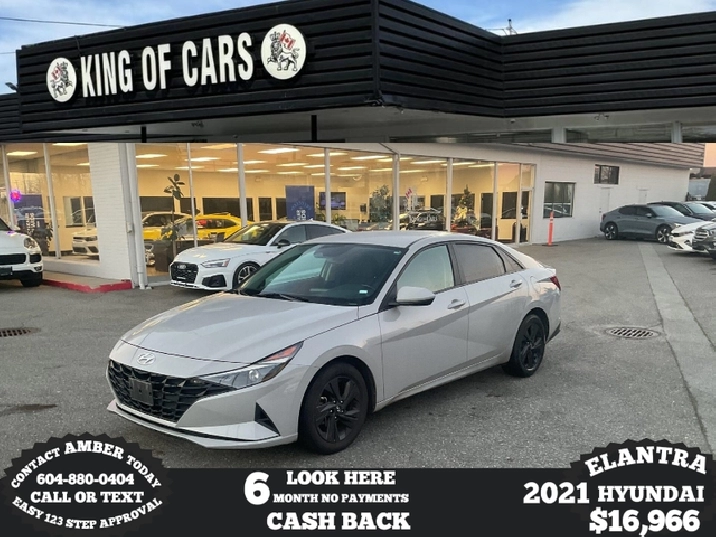 2021 HYUNDAI ELANTRA PREFERRED Stock Number: P215714 VEHICLE OPTIONS LED Headlights, Alloys, 5 Passenger Seating, Push Start, Backup Camera, Apple CarPlay, Android Auto, Heated Seats, Heated Steering Wheel, Automatic Emergency Braking, Lane Assist, Blind Spot Detection, Bluetooth Available warranty options Call or Text: 604-533-4499 Apply Online: kingofcarsbc.com Dealer #31301 Plus an administration fee of $895, finance fee of $995 and Applicable Taxes All finance options are subject to OAC (On Approved Credit)