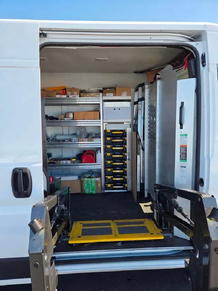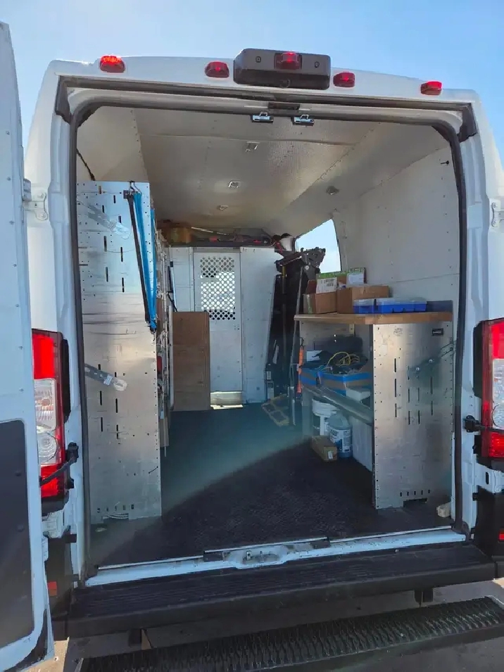 2021 Ram ProMaster 2500 high roof cargo / service van 106,000 km great condition and well-maintained company vehicle. 136” wheelbase Heat/AC/Cruise Control V6 FWD. Unit is very clean inside & out excellent condition drives great ready for work. This unit is outfitted and set up as a mobile equipment service vehicle with premier storage shelves, work bench, 1000lbs equipment lift, LED work area lighting. This is a commercial sale where GST is applicable.