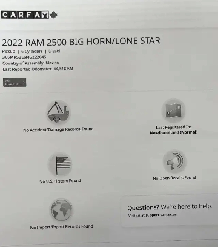 Hard to find regular cab 4×4 Diesel Big Horn Level 2 Equipment Group with only 45,000kms