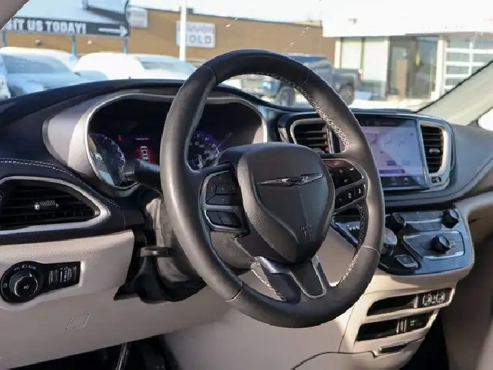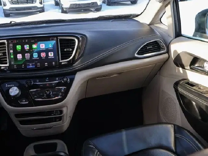 Inside, the Touring-L trim offers upscale comfort with leather heated seats, a heated steering wheel, and Chrysler's signature Stow 'n Go seating, providing unmatched cargo flexibility and easy configuration for passengers or gear.
