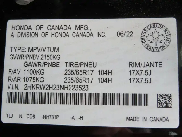- Tires: 235/65R17 104H All-Season
