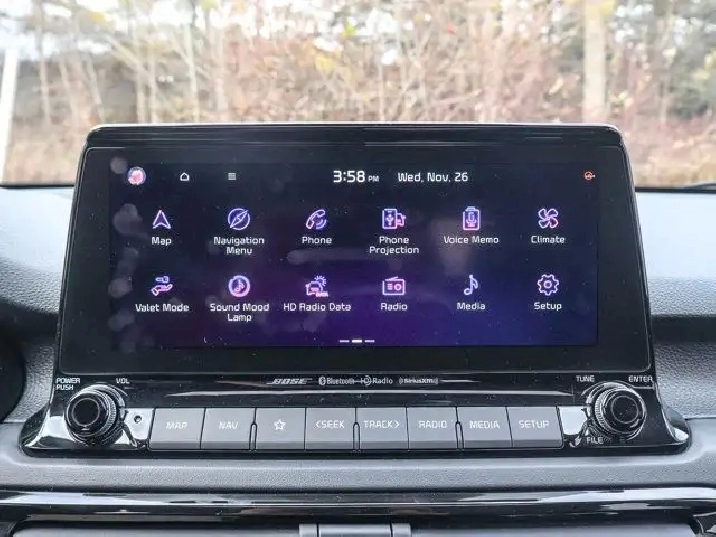 - Radio: AM/FM/HD/SiriusXM UVO Intelligence -inc: 10.25" display screen, steering wheel audio controls, USB charger and media input port, Android Auto and Apple CarPlay, Bluetooth, navigation and Bose premium sound system