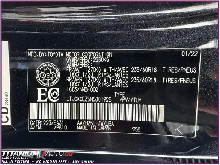 : JTJGKCEZ5N5001928 - Engine Size: