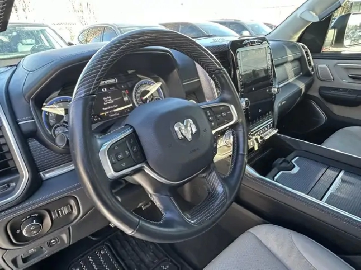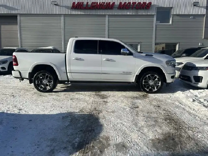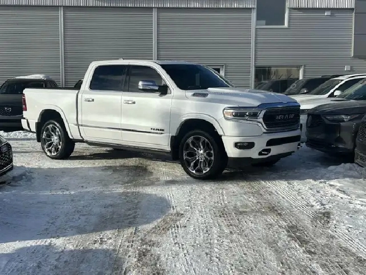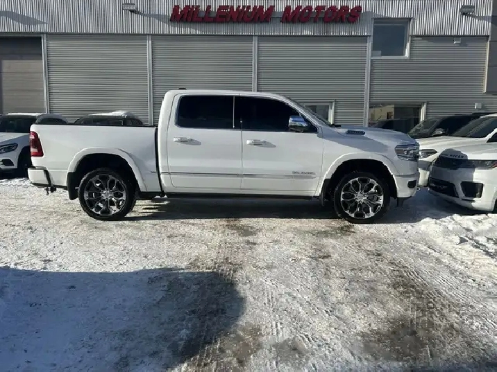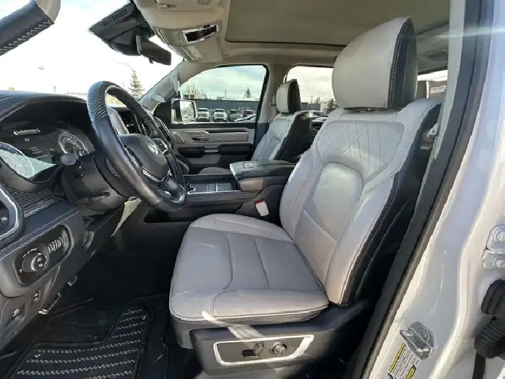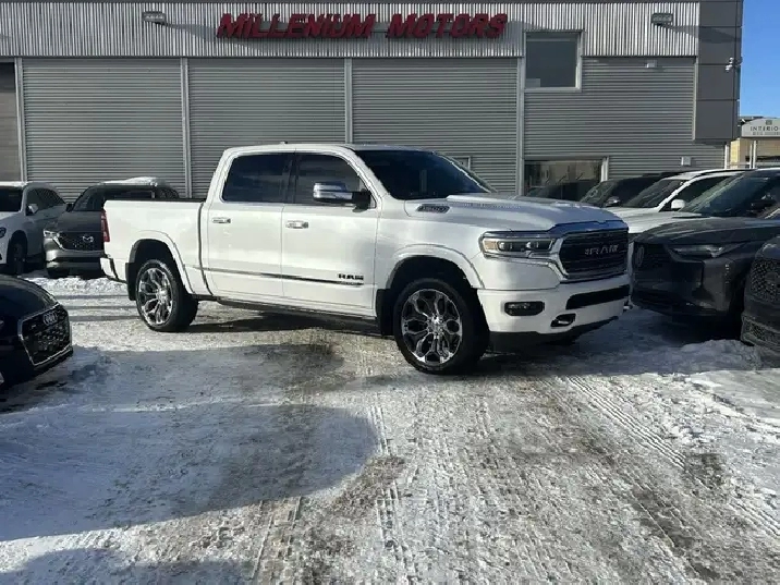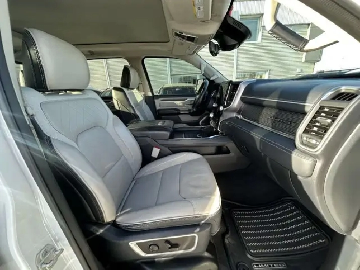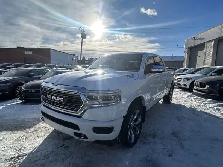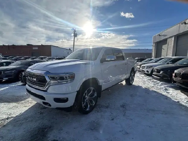 2022 RAM 1500 LIMITED 10TH ANNIVERSARY EDITION CREW CAB 4WD, 3.0L V6 TURBOCHARGED DIESEL ENGINE AUTOMATIC, IVORY TRI-COAT WHITE PEARL EXTERIOR WITH FULL INDIGO INTERIOR WITH SEA SALT SEATS, EQUIPPED WITH 12in. DISPLAY SCREEN WITH NAVIGATION, HEADS UP DISPLAY, 360 CAMERA, PANORAMIC SUNROOF, DRIVERS ASSIST PKG, 22in. POLISHED ALLOY WHEELS, SMART KEY ENTRY WITH PUSH BUTTON START, REMOTE START, HEATED AND COOLED VENTILATED FRONT POWER SEATS, HEATED STEERING WHEEL,4 ZONE CLIMATE CONTROL WITH A/C, POWER LOCKS/FOLDING MIRRORS AND WINDOWS PREMIUM HARMON KARDON AUDIO WITH SXM RADIO, APPLE CARPLAY, ANDROID AUTO, BLUETOOTH, USB AND AUX INPUT, WIRELESS CHARGER, TRACTION/CRUISE CONTROL, TELESCOPIC STEERING, POWER PEDAL CONTROL, SUEDE HEADLINER, RIDE HEIGHT CONTROL, MULTI FUNCTION TAILGATE, POWER RUNNING BOARDS, REAR SLIDING WINDOW, TOW PKG, FOG LAMPS, PARK ASSIST, PRIVACY GLASS AND MORE. LOCAL ONE OWNER ACCIDENT FREE CALGARY TRUCK. CARFAX AVAILABLE UPON REQUEST. CONTACT US DIRECTLY @ 403-735-6050 TO BOOK YOUR VEIWING OR FOR ANY FURTHER DETAILS. STOCK # 346117