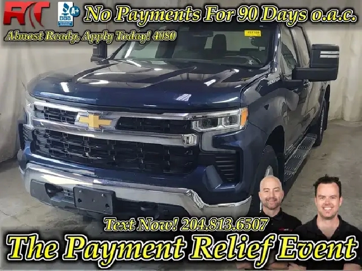 Manitoba Safety Certified, We LOVE Trade-Ins!, Hand Selected Used Cars, Priced Below Market w/ Technology!, All of our vehicles come with our "Oil 4 Life" Program (approx $200/year savings), FREE CarFax History Report on ALL Vehicles!, Apply for Financing on This Vehicle: https://fast.ridetime.ca/pre_approve, 10-Way Power Driver Seat w/Lumbar, 12.3" Multicolour Reconfigurable Digital Display, 120-Volt Bed Mounted Power Outlet, 120-Volt Instrument Panel Power Outlet, Auto-Locking Rear Differential, Bluetooth® For Phone, Chevrolet Connected Access Capable, Chevytec Spray-On Black Bedliner, Chrome Mirror Caps, Colour-Keyed Carpeting Floor Covering, Compass, Convenience Package, Deep-Tinted Glass, Dual Rear USB Ports (Charge Only), Dual-Zone Automatic Climate Control, Electric Rear-Window Defogger, Electrical Steering Column Lock, Electronic Cruise Control, EZ Lift Power Lock & Release Tailgate, Front Frame-Mounted Black Recovery Hooks, Front Rubberized Vinyl Floor Mats, HD Rear Vision Camera, Heated Driver & Front Outboard Passenger Seats, Heated Power-Adjustable Outside Mirrors, Heated Steering Wheel, Hitch Guidance, Inside Rear-View Mirror w/Tilt, Integrated Trailer Brake Controller, Keyless Open & Start, LED Cargo Area Lighting, OnStar & Chevrolet Connected Services Capable, Power Front Windows w/Driver Express Up/Down, Power Front Windows w/Passenger Express Down, Power Rear Windows w/Express Down, Preferred Equipment Group 1LT, Protection Package, Rear 60/40 Folding Bench Seat (Folds Up), Rear Rubberized-Vinyl Floor Mats, Rear Wheelhouse Liners, Remote Start Package, Remote Vehicle Starter System, SiriusXM w/360L, Standard Suspension Package, Standard Tailgate, Steering Wheel Audio Controls, Theft Deterrent System (Unauthorized Entry), Trailering Package, True North Edition, Wheels: 17" x 8" Bright Silver Painted Aluminum, Wi-Fi Hot Spot Capable, Wireless Phone Projection, Wrapped Steering Wheel.