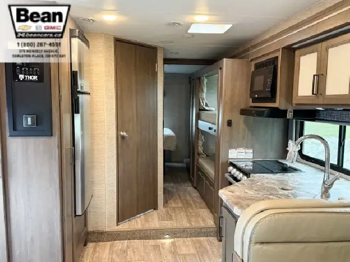 The 2023 Thor Chateau 31EV is the kind of motorhome that instantly feels ready for adventure. With its full-wall slide, the living area opens into a bright, inviting space where everyone can stretch outwhether youre relaxing on the sofa, gathering at the dinette, or settling in for a movie on the 39 TV. Sleeping up to ten people, its ideal for families or anyone who loves traveling with a crowd: a cozy queen bed, bunk beds the kids will claim instantly, a roomy cab-over bunk, and multiple convertible sleeping areas. The kitchen feels wonderfully practical with a 3-burner stove, oven, microwave, residential-style sink, refrigerator, and tons of storage for snacks, cookware, and all the extras that make trips feel like home.