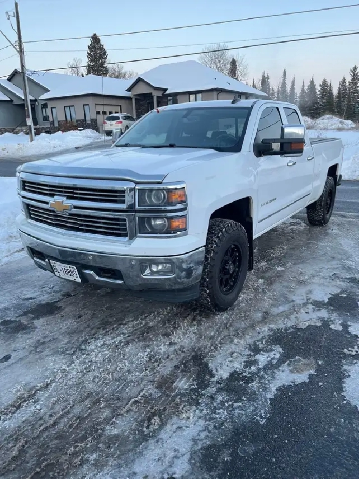 Rust free 2015 Chevy Silverado, LTZ fully loaded with leather heated seats, integrated trailer, brake steering wheel controls aftermarket rims with new BFG KO3,285/70/17 selling safety. for more information. Please call Rob at 807-624-6189.