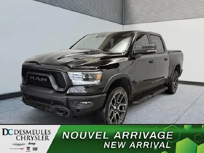 2023 Ram 1500 Rebel Decouvrez ce Ram 1500 Rebel 2023, un camion puissant, audacieux et hautement equipe, propulse par le V8 HEMI et concu pour dominer autant la route que le hors route. Disponible des maintenant chez Desmeules Chrysler a Laval. DESCRIPTION / DESCRIPTION Couleur exterieure / Exterior Color Couche nacree cristal noir etincelant / Diamond Black Crystal Pearl Couleur interieure / Interior Color Noir avec sieges noirs / Black interior with black seats Interieur / Interior Sieges baquets avant dessus cuir de luxe / Luxury leather-trimmed front bucket seats Moteur / Engine V8 HEMI 5.7L VVT avec MDS Transmission / Transmission Automatique 8 vitesses / 8-Speed Automatic Transmission EQUIPEMENT DE SERIE / STANDARD EQUIPMENT (Si non remplace par equipement optionnel) Rapport de pont arriere 3.92 Differentiel arriere autobloquant a commande electrique Alerte collision avant pleine vitesse Plus Capot sport haute performance Camera de recul ParkView Assistance au freinage Systeme electronique d'antiderapage Freinage d'urgence anticipe Assistance au depart en pente Antipatinage Antiroulis electronique Antilouvoiement de remorque Assechement automatique des freins Sacs lateraux avant supplementaires Sacs frontaux multimodes evolues Rideaux gonflables lateraux ACCESSOIRES OPTIONNELS / OPTIONAL EQUIPMENT (Peut remplacer ou ajouter a l'equipement de serie) Couche nacree cristal noir etincelant 495 $ Ensemble Eclair 25W Peinture monochrome Edition Night 1 495 $ Elements noirs accentues Style exterieur assombri Siege passager soutien lombaire 2 reglages electriques Baquets avant cuir de luxe Sieges conducteur/passager 8 reglages electriques Ensemble d'Equipement de Niveau 2 4 245 $ Poignees de porte couleur contrastante Soutien lombaire conducteur/passager (2 reglages) Uconnect 5W NAV avec ecran 12 po Ports USB avant et arriere Bacs de rangement plancher 2e rangee Sieges avant chauffants Compartiment de rangement sous banquette arriere Lunette coulissante electrique Tele-deverrouillage de proximite Volant chauffant Systeme audio Harman/Kardon haute performance 19 haut-parleurs Ecran tactile 12 po Pedalier electrique Demarreur a distance ParkSense avant/arriere Amortisseur de vibration passif Toit ouvrant panoramique 2 panneaux 1 695 $ Marchepieds lateraux tubulaires noirs Mopar 795 $ Doublures de passages de roue arriere Attelage de classe IV 495 $ Commande de frein de remorque 395 $ Doublure de caisse pulverisee Mopar 800 $ CONCLUSION Un Ram 1500 Rebel 2023 muscle, moderne et luxueusement equipe, offrant une puissance exceptionnelle avec le V8 HEMI et un confort haut de gamme. Venez le decouvrir des aujourd'hui chez Desmeules Chrysler a Laval ! Les tarifs et informations presents sur notre site: www.desmeuleschrysler.ca sont a jour et prioritaires. Les prix affiches sur des sites externes peuvent etre sujets a un delai de mise a jour et ne constituent pas un engagement contractuel.