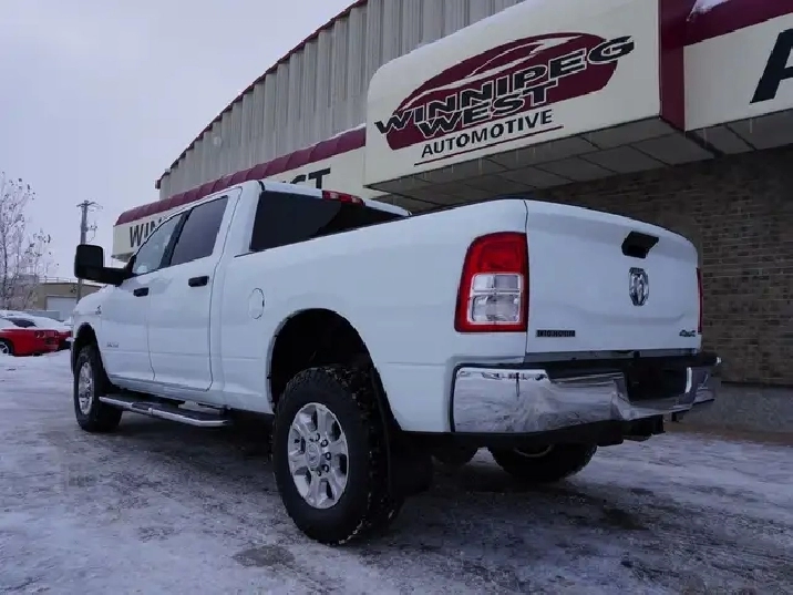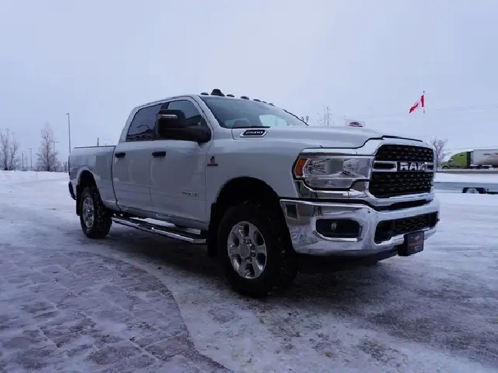 This 2023 RAM 2500 Big Horn Crew Cab 4x4 is a hard-to-find low-kilometer diesel truck that combines legendary Cummins power, heavy-duty capability, and modern technology. With only 64,000 original kilometers, this truck is exceptionally clean, clearly well maintained, and still shows like new inside and out. Finished in Bright White with a Black interior and Diesel Grey premium cloth seating, this RAM delivers a clean, professional look that Is perfect for work, towing, or daily driving.