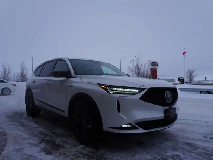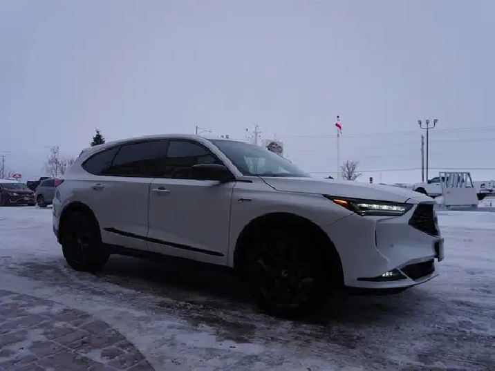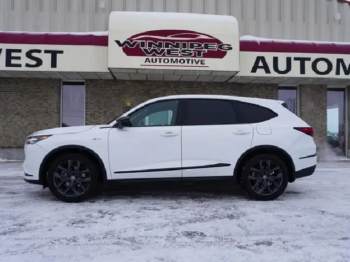 WOW, JUST IN, LOCAL MANITOBA TRADE, VERY LOW KMS AND WHAT A STUNNING CAR IN PLATINUM PEARL OVER STRIKING RED AND BLACK ULTRASUEDE INTERIOR, COMPLETELY STUNNING LUXURY SUV!!! If you've been searching for a luxury 3-row SUV that turns heads everywhere it goes and delivers thrilling performance with year-round confidence, your search ends here. This A-Spec Edition MDX is the ultimate blend of sporty styling, premium comfort, and cutting-edge technology all wrapped in Acura's legendary reliability. SAVE BIG ON THIS BEAUTY AT OVER $75,000 NEW! Save huge dollars for this as new Luxury SUV.
