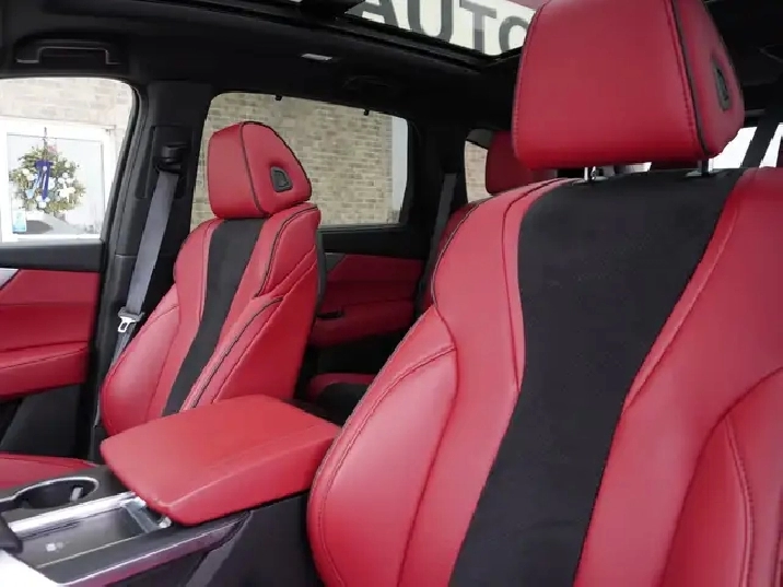 - Striking Red and Black Ultrasuede & Leather sport seats ventilated and heated for year-round comfort