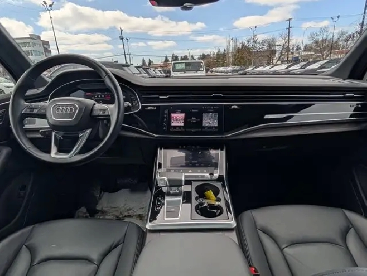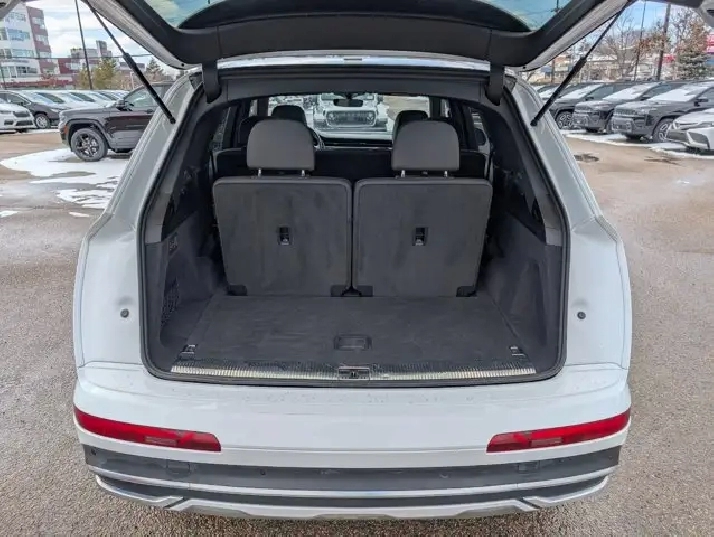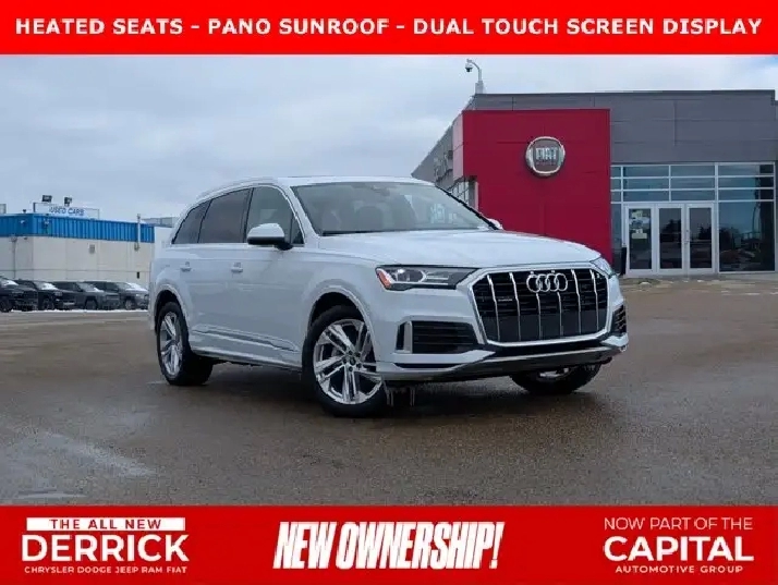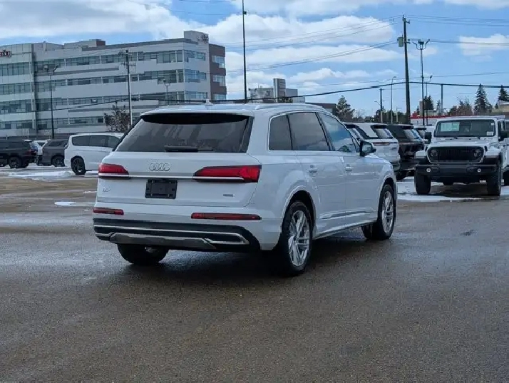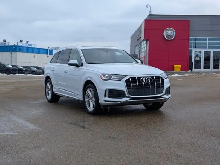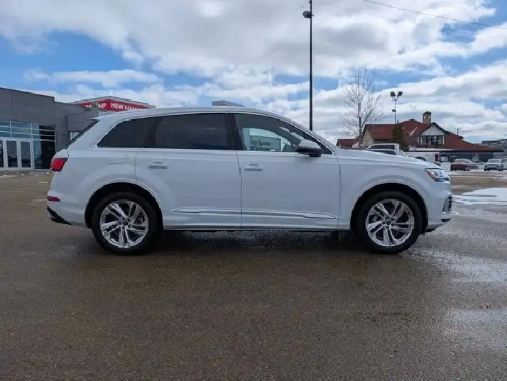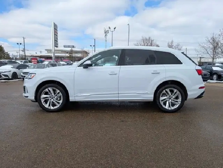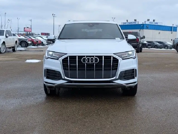 This pre-owned 2024 Audi Q7 Komfort offers a refined blend of luxury, performance, and practicality, finished in elegant Carrara White with a Black interior that highlights its timeless design. Powered by a 2.0L turbocharged engine paired with an 8 speed automatic transmission, it delivers smooth acceleration and a composed ride suited for both city driving and longer journeys. The exterior is thoughtfully equipped with automatic levelling LED headlamps, rain sensing wipers, and power heated folding mirrors with integrated turn signals, enhancing visibility and convenience in changing conditions. Privacy glass and a panoramic sunroof add both style and comfort, while the remote trunk release makes accessing cargo space effortless. Inside, the cabin features black leather seating with heated front seats and a heated steering wheel, creating a comfortable environment in colder weather. Multi zone air conditioning ensures personalized comfort for all passengers, while the universal garage door opener and keyless start add to everyday ease of use. Technology and safety are well represented with an integrated navigation system, backup camera, rear parking aid, and cross traffic alert to help improve awareness and confidence on the road. Brake assist and cruise control further support a smooth and controlled driving experience, while remote start adds convenience in any season. With its combination of premium materials, advanced features, and versatile performance, this Audi Q7 Komfort is a well rounded luxury SUV ready to meet the demands of daily driving and family life. VISIT US TODAY! Ask for the Internet Department for more information or to book your test drive today! Text 587-772-2566 for a quicker response! AMVIC Licensed Dealer - License Number B2039062. Disclaimer: All prices are plus taxes and include all cash credits. See dealer for details. Stop by and visit us at THE ALL-NEW DERRICK DODGE, 6211 104 ST NW, EDMONTON, AB, T6H2K8.