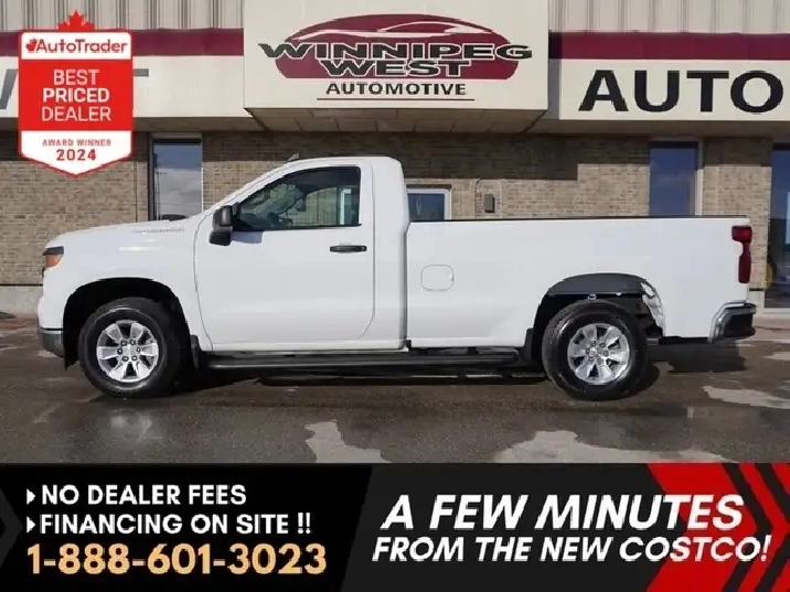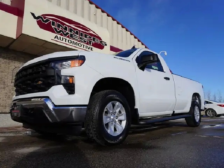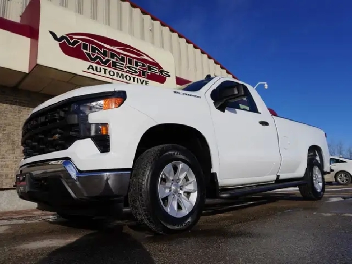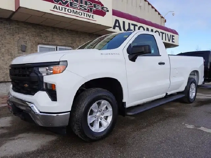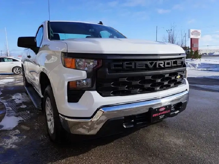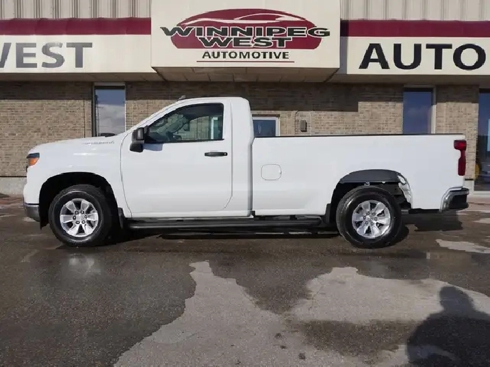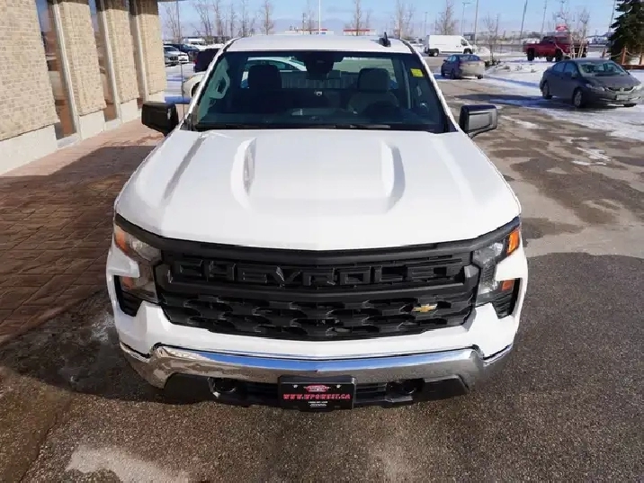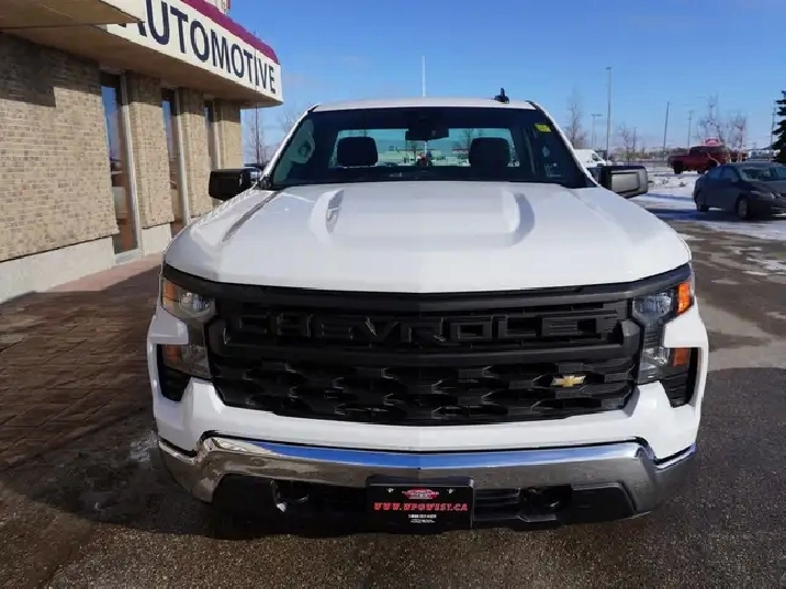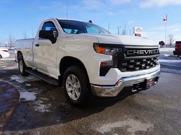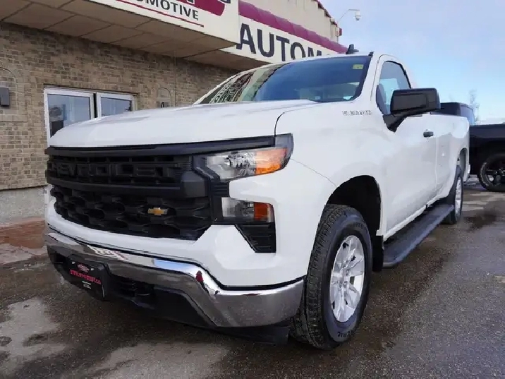 STILL AS NEW, VERY LOW KMS, PERFECT HISTORY, HARD TO FIND REGULAR CAB 8-FOOT BOX WITH A 5.3L V8 ENGINE AND THE NEW 10SP AUTO TRANSMISSION EXCEPTIONALLY CLEAN & SHARP & READY TO GO. WESTERN CANADIAN 2024 CHEVROLET SILVERADO 1500 5.3L V8 Regular Cab equipped with the proven 5.3L ECOTEC3 V8 engine (producing 355 HP and 383 lbs of pulling torque) matched to the new 10--speed automatic transmission, Chevy Safety Assist which includes Lane Departure warning w/ lane keep assist, forward collision braking, Front pedestrian braking and more, 3-passenger seating with fold down center console, air, tilt, cruise, PW, PL, Keyless ENTRY AND Push Button Start, remote deployable tailgate, 7-inch Infotainment colour touch screen with audio to play music from your phone or USB device, multi-port USB connect, Projection for Apple Car Play & Android Auto, factory Bluetooth, factory tow package, back up camera, LED daytime running lights, darker tinted glass, step up rear bumper, Easy step rear bumper, and more! Nice clean truck for all your Work, Farm, or personal needs!