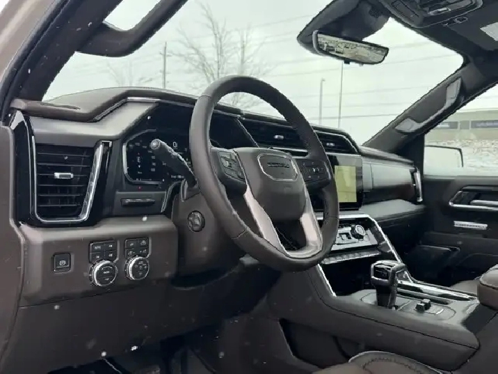 Under the hood, the Sierra 1500 Denali boasts a robust 6.2L V8 engine paired with a smooth automatic transmission, delivering impressive power and seamless performance. The 4x4 drive system ensures exceptional traction and control, making it ideal for Canada's varied weather conditions, from snowy winters to rainy springs. This gas-powered powerhouse is engineered to provide a confident and exhilarating driving experience, whether you're towing heavy loads or embarking on a long-distance journey.