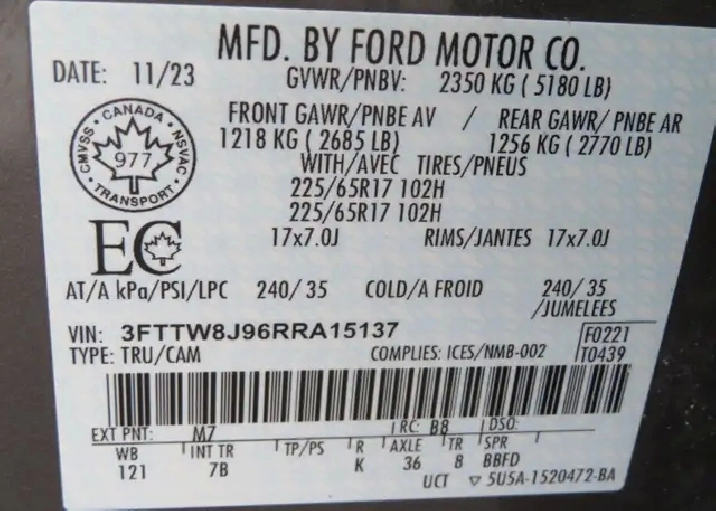 - GVWR: 2,361 kgs (5,205 lbs) Payload Package