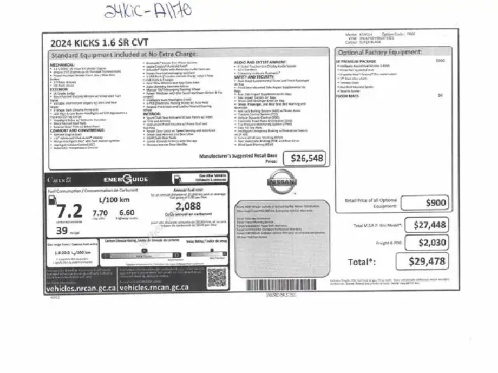 *** TEXTEZ-NOUS AU 819-801-5001 (TROIS-RIVIÈRES) 819-805-2929 (SHAWINIGAN) POUR UNE RÉPONSE RAPIDE *** Le Nissan Kicks SR est un SUV compact qui allie style audacieux, performances dynamiques et polyvalence pratique. Avec son design extérieur distinctif, le Kicks SR se démarque par des lignes modernes, une calandre en V signature et des accents sportifs qui ajoutent une touche d'énergie et de dynamisme à son esthétique. Mags Cuir Caméra, Ensemble SR Premium*** 650 véhicules disponibles sur place inspectés et garantis *** le meilleur choix au Québec *** Osez comparer chez Gervais Auto! Une entreprise familiale depuis plus de 50 ans. Inventaire complet sur le www.gervais-auto.com. Financement 1ère, 2e et 3e chance aux meilleurs taux disponibles sur place! Appelez-nous au 819-538 (auto) Shawinigan ou au 819-697 (auto) Trois-Rivières pour plus d'informations ! 29 JUILLET 2029 OU 100 000 KM : GARANTIE CONSTRUCTEUR ****** GARANTIE GERVAIS : 6 MOIS OU 10 000 KM ***** GARANTIE PROLONGÉE DISPONIBLE ***