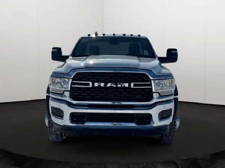 • HEAVY-DUTY SNOWPLOW PREP GROUP -inc: Transfer Case Skid Plate Shield Heavy-Duty Front Suspension Group,QUICK ORDER PACKAGE 2YG SLT -inc: Engine: 6.7L Cummins I-6 Turbo Diesel Transmission: 6-Spd Aisin Heavy-Duty Automatic Speed Sensitive Power Locks Door Sill Scuff Pads Map/Courtesy Lamp Chrome Grille Nostrils/Mic Black Bright Grille Surround Power Windows w/Front 1-Touch Down Chrome Headlamp Bezels Mirror Running Lights Painted IP Bezels w/Hydrographics Premium Vinyl Door Trim w/Map Pocket Front Floor Mats Overhead Console RAM Door Badges Overhead Cup Holder Lamp Power Convex Aux Exterior Mirrors Black Heated Power Fold Telescopic Mirrors Quad-Lens Halogen Headlamps Glove Box Exterior Mirrors w/Turn Signals Body Insulation Exterior Mirrors w/Courtesy Lamps Passenger Sun Visor w/Illuminated Mirror Rear Dome Lamp Centre Hub Key Fob 6 Speakers Power Adjust Mirrors Traveller/Mini Trip Computer Black Wheel Flares SLT Badge Remote Keyless Entry Bright Front Bumper,MANUAL DPF REGENERATION,RADIO: UCONNECT 5 W/8.4 DISPLAY -inc: Google Android Auto Hands-Free Phone & Audio SiriusXM Satellite Radio Auto-Dimming Rearview Mirror Integrated Centre Stack Radio Connectivity - US/Canada A/C w/Dual-Zone Auto Temp Control Courtesy Lamps 4G LTE Wi-Fi Hot Spot All Radio-Equipped Vehicles All R1 Low Radios 8.4 Touchscreen Apple CarPlay Capable,ELECTRICAL ACCESSORY GROUP,ELECTRIC SHIFT-ON-THE-FLY TRANSFER CASE,BRIGHT WHITE,GVWR: 8 845 KGS (19 500 LBS),ENGINE: 6.7L CUMMINS I-6 TURBO DIESEL -inc: Selective Catalytic Reduction (Urea) Dual 730-Amp Maintenance-Free Batteries Cummins Turbo Diesel Badge Current Generation Engine Controller Smart Diesel Exhaust Brake Supplemental Heater B-20 Bio Diesel Capability MOPAR Winter Front Grille Cover GVWR: 8 845 kgs (19 500 lbs),SIRIUSXM SATELLITE RADIO,POWER 2-WAY DRIVER LUMBAR ADJUST,FRONT 40/20/40 SPLIT BENCH SEAT -inc: Storage Tray,HEAVY-DUTY FRONT SUSPENSION GROUP,POWER TAKE OFF PREP -inc: Hard-Wired Remote Start,TRAILER BRAKE CONTROL -inc: Trailer Light Check,ENGINE SHUTDOWN TIMER,TRANSFER CASE SKID PLATE SHIELD,ADD BLACK VINYL FLOOR COVERING,4.44 REAR AXLE RATIO (STD),VOLTAGE MONITORING AUTO IDLE-UP SYS,FULL-SIZE SPARE TIRE -inc: 19.5 Steel Spare Wheel,83.2L (22-GALLON) FUEL TANK,DIESEL GREY/BLACK PREMIUM CLOTH FRONT 40/20/40 BENCH SEAT -inc: Front Armrest w/Cupholders Front Centre Seat Cushion Storage Front 40/20/40 Split Bench Seat Storage Tray Power 8-Way Adjustable Driver Seat 4-Way Front Headrests Power 2-Way Driver Lumbar Adjust,TIRES: 225/70R19.5G OFF ROAD,WHEELS: 19.5 X 6 STEEL (STD),TRANSMISSION: 6-SPD AISIN HEAVY-DUTY AUTOMATIC -inc: Urethane Shift Knob,Four Wheel Drive,Traction Control,A/C,Automatic Headlights,Requires Subscription,4-Wheel Disc Brakes,AM/FM Stereo,Bluetooth Connection,Power Steering,Locking/Limited Slip Differential,Immobilizer,Dual Rear Wheels,Tires - Rear All-Terrain,ABS,Keyless Start,Telematics,Passenger Air Bag,Variable Speed Intermittent Wipers,MP3 Capability,Passenger Air Bag Sensor,Daytime Running Lights,Steel Wheels,MP3 Capability,Intermittent Wipers,Stability Control,Tow Hooks,Cruise Control,Power Windows,Driver Air Bag,Traction Control,Bluetooth Connection,Auxiliary Audio Input,Adjustable Steering Wheel
