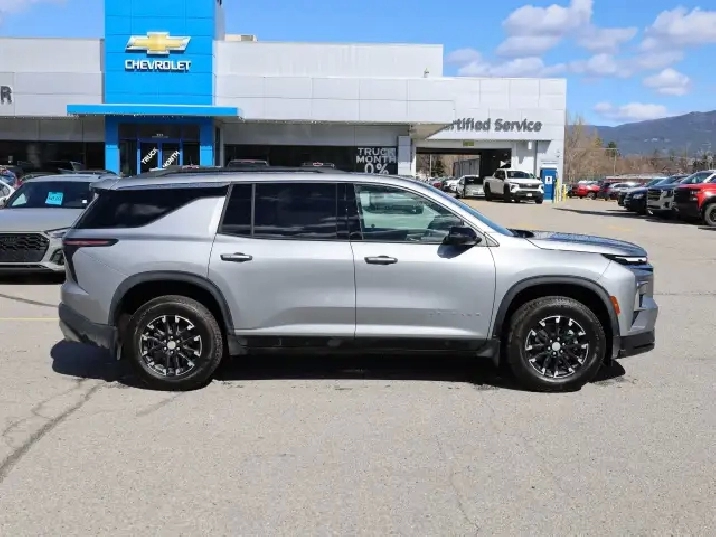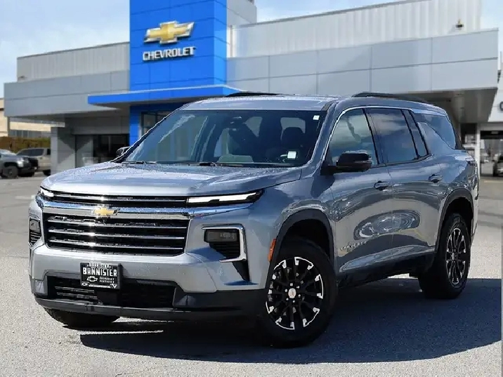 Completely redesigned and more powerful than ever, this 2025 Chevrolet Traverse LT AWD delivers modern performance and everyday versatility in a full-size SUV. Its equipped with a 2.5L turbocharged 4-cylinder engine producing 328 horsepower and 326 lb-ft of torque, paired with a smooth 8-speed automatic transmission and all-wheel drive for confident traction in all conditions. This Traverse is built for family life, road trips, and hauling with ease. Inside, the LT trim offers a spacious and tech-forward cabin with three-row seating for up to eight passengers, a large infotainment display with Apple CarPlay and Android Auto, wireless charging, and advanced driver-assist features. The redesigned interior provides impressive cargo space and comfort for both passengers and gear, making it ideal for busy lifestyles. With its one-owner history, no reported accidents, and low kilometers, this Traverse offers modern capability and peace of mind in one package.