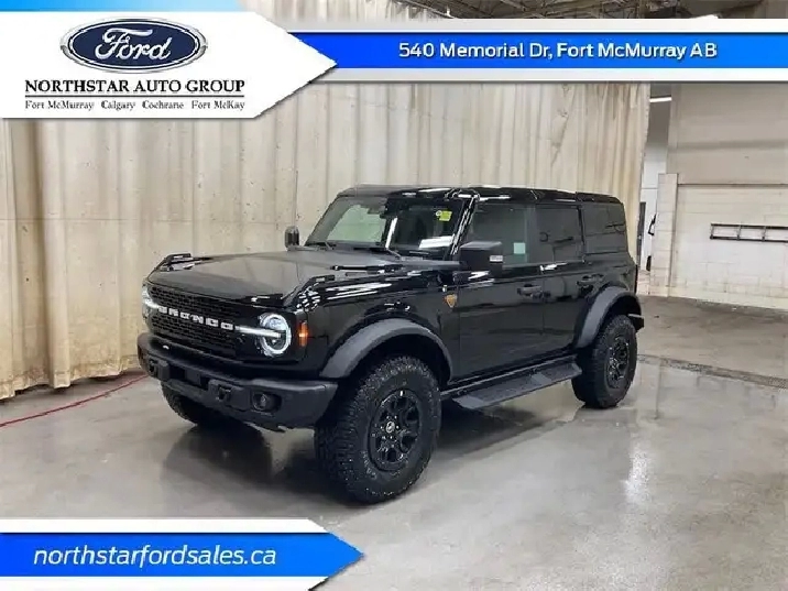 Navigation, LED Lights, Aluminum Wheels, Sunroof, Off-Road Suspension! Want an SUV that can genuinely do it all and look good while at it? Look no further than this 2025 Ford Bronco!With a nostalgia-inducing design along with remarkable on-road driving manners with supreme off-road capability, this 2025 Ford Bronco is indeed a jack of all trades and masters every one of them. Durable build materials and functional engineering coupled with modern day infotainment and driver assistive features ensure that this iconic vehicle takes on whatever you can throw at it.This Shadow Black SUV has an Automatic transmission and is powered by a 315HP 2.7L V6 Cylinder Engine.Our Bronco's trim level is Badlands. Go the distance over any terrain in this Bronco Badlands, with even more undercarriage protection, robust Bilstein shock absorbers, front active anti-roll bars, front and rear tow hooks, and an assortment of upfitter switches. The seats are lined with marine-grade vinyl, with rubber floor covering, for easy rinsing after your intense off-road sessions. Other features include a manual targa composite 1st row sunroof, a manual convertible hard top with fixed rollover protection, a flip-up rear window, LED headlights with automatic high beams, and proximity keyless entry with push button start. Connectivity is handled by a 12-inch LCD screen powered by SYNC 4 with inbuilt navigation, wireless Apple CarPlay and Android Auto, with SiriusXM satellite radio. Additional features include towing equipment including trailer sway control, pre-collision assist with pedestrian detection, forward collision mitigation, a rearview camera, and even more. This vehicle has been upgraded with the following features: Navigation, LED Lights, Aluminum Wheels, Sunroof, Off-Road Suspension, Apple CarPlay, Android Auto.To apply right now for financing use this link: http://www.northstarfordsales.ca/new/apply-for-credit.htmlSee dealer for details.Vehicle pricing offer shown expires 2026-01-31. o~o