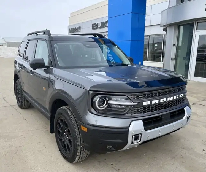 2025 Ford Bronco Sports Badlands 4WD. Adaptive Cruise Control. Alloy Wheels. Apple CarPlay/Android Auto. Back-Up Camera. Blind Spot Monitoring. Bluetooth. Forward Braking. Front Collision Warning. Heated Leather Seats. Heated Steering Wheel. Keyless Entry. Lane Keep Assist. Local Trade. Power Memory Seats. Remote Start. Sunroof. Power Windows/Locks. Push Button Start. Rain Sensing Wipers. Rear AC/Heat. Rear Park Assist. Satellite Radio. Single Owner. Wireless Charging. Low Kilometers. And so much more... WHY SHOP AT MURRAY GM: Shopping at your local Murray GM Store in Estevan helps to support your community. Murray Estevan contributes to many charities and organizations throughout Estevan & South East Saskatchewan. We can be your local source for servicing your new or pre-owned vehicle. We are here for any concerns or issues that may arise. To us, you're more than a customer, you're part of the Murray Family. Come in today and experience the Murray difference!