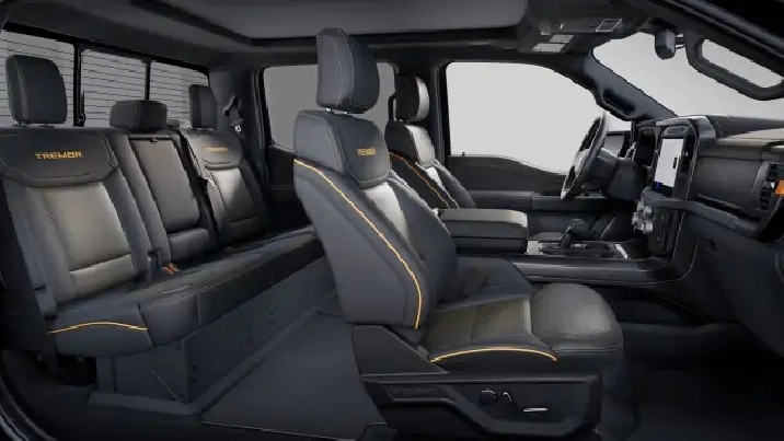 Anti-Lock Brakes;Fog Lights;Running Boards;Compass;ENGINE BLOCK HEATER;Trailer Wiring Harness;Driver Information Centre;Deep Tinted Glass;Perimeter Alarm;Cornering Lights;Locking glove box;Body-coloured door handles;Fixed antenna;Black grille;Rear child safety locks;Full Cloth Headliner;Driver Seat;Front Centre Armrest;Cruise control w/steering wheel controls;Solid axle rear suspension w/leaf springs;Outside temp gauge;Perimeter/approach lights;Steel spare wheel;integrated storage;Upfitter Switches;Front Cupholder;8 speakers;Air filtration;Front Anti-Roll Bar;Electronic Transfer Case;Side impact beams;Fade-to-off interior lighting;HD gas-pressurized shock absorbers;Rear cupholder;Manual tilt/telescoping steering column;Driver and passenger visor vanity mirrors;FRONT AND REAR PARKING SENSORS;Double wishbone front suspension w/coil springs;Engine: 5.0L V8;1 12V DC Power Outlet;Delayed Accessory Power;Airbag Occupancy Sensor;Dual Stage Driver And Passenger Front Airbags;Dual Stage Driver And Passenger Seat-Mounted Side Airbags;2 Seatback Storage Pockets;Front And Rear Map Lights;Redundant Digital Speedometer;Manual Adjustable Front Head Restraints and Manual Adjustable Rear Head Restraints;HVAC -inc: Underseat Ducts and Console Ducts;ELECTRONIC LOCKING W/3.73 AXLE RATIO;2 LCD Monitors In The Front;Tire Specific Low Tire Pressure Warning;Transmission w/Driver Selectable Mode;Black Side Windows Trim;Seats w/Cloth Back Material;Voice Activated Dual Zone Front Automatic Air Conditioning;Auto Locking Hubs;Electric Power-Assist Steering;Full-Size Spare Tire Stored Underbody w/Crankdown;Regular Box Style;Tailgate Rear Cargo Access;Safety Canopy System Curtain 1st And 2nd Row Airbags;200 Amp Alternator;136.3 L Fuel Tank;Aluminum Panels;60-40 Folding Split-Bench Front Facing Fold-Up Cushion Rear Seat;Part-Time Four-Wheel Drive;Power Rear Window w/Defroster;Front Camera w/Washer;Outboard Front Lap And Shoulder Safety Belts -inc: Rear Centre 3 Point, Height Adjusters and Pretensioners;Right Side Camera;Streaming Audio;3 Skid Plates;Left Side Camera;Cargo Lamp w/High Mount Stop Light;TWIN PANEL MOONROOF;80-Amp/Hr 800CCA Maintenance-Free Battery w/Run Down Protection;Transmission: Electronic 10-Speed Automatic;Passenger Seat;Ford Co-Pilot360 - Reverse Camera Back-Up Camera;Instrument Panel Bin, Dashboard Storage, Interior Concealed Storage, Driver / Passenger And Rear Door Bins;Cargo Bed Camera;Leatherette Steering Wheel;Full Floor Console w/Locking Storage, Mini Overhead Console w/Storage and 1 12V DC Power Outlet;Class IV Towing Equipment -inc: Hitch and Trailer Sway Control;Dual Stainless Steel Exhaust w/Black Tailpipe Finisher;Urethane Gear Shifter Material;Paint w/Decal;Sync 4 Wireless Phone Connectivity;BLIS (Blind Spot Information System) Blind Spot;Interior Trim -inc: Metal-Look Instrument Panel Insert, Cabback Insulator and Chrome/Metal-Look Interior Accents;Digital/Analog Appearance;Aerial View Camera System;Collision Mitigation-Front;Driver Monitoring-Alert;Headlights-Automatic Highbeams;Evasion Assist;Wheels: 18" Alloy w/Dark Matte Finish;Tires: 275/70R18 All-Terrain;EQUIPMENT GROUP 402A HIGH;BLACK, UNIQUE TREMOR LEATHER-TRIMMED BUCKET SEATS -inc: heated and ventilated memory drivers seat, 10-way power seat, multi-adjustable power front passenger seat (power lumbar driver/passenger), flow-through console and floor shifter;771.1 Kgs Maximum Payload;BLACK, UNIQUE TREMOR LEATHER-TRIMMED BUCKET SEATS;FordPass Connect 5G Mobile Hotspot Internet Access;PCA with AEB and Intersection Assist;TRANSMISSION: ELECTRONIC 10-SPEED AUTOMATIC -inc: SelectShift w/progressive range select and selectable drive modes: normal, ECO, sport, tow/haul, slippery, deep snow/sand and mud/rut;Ford Co-Pilot360 - Autolamp Auto On/Off Reflector Led Low/High Beam Auto High-Beam Headlamps w/Delay-Off;ENGINE: 5.0L V8 -inc: auto start/stop technology system, GVWR: 7,100 lbs (3,221 kgs), Front License Plate Bracket, Standard in provinces where required;GVWR: 7,050 lbs (3,197 kgs);Cross-Traffic Alert with Reverse Brake Assist;Connected Navigation -inc: 1-year trial, Navigation services require SYNC4 and FordPass Connect (optional on select vehicles), complimentary connect service and the FordPass app (see FordPass terms for details), Eligible vehicles receive a complimentar...;Cab Mounted Cargo Lights;EQUIPMENT GROUP 402A HIGH -inc: Power-Adjustable Pedals, Bed Utility Package, Tailgate Step w/Tailgate Work Surface, LED Box Lighting, Power Tailgate, 4 Pick-up Box Tie-Down Plates, Premium Wrapped Steering Wheel, Modular Front Bumper & Carbon Black Re...