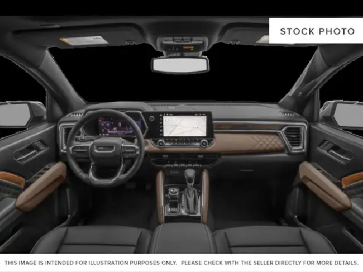 Stock #TP156692A AMVIC LICENSED DEALER The 2025 GMC Canyon Denali Crew Cab 4WD delivers premium refinement with serious capability, finished in striking Volcanic Red Tintcoat and paired with a Jet Black and Teak interior. Denali-exclusive styling elements, chrome assist steps, and 20-inch diamond-cut dark grey aluminum wheels give this midsize truck a bold, upscale presence that stands out on the road or at the jobsite. Power comes from the 2.7L TurboMax engine matched to an 8-speed automatic transmission and Autotrac 2-speed transfer case, providing confident performance and traction in a variety of driving conditions. An off-road suspension with a factory-installed 2-inch lift, widened track, and auto-locking rear differential enhances stability and control, while selectable drive modes allow the Canyon to adapt easily to terrain, towing, or everyday driving. Inside, the Denali cabin is designed for comfort and convenience with ventilated and heated front seats, dual-zone automatic climate control, heated steering wheel, memory driver seat, and wireless charging. Technology is front and centre with an 11.3-inch GMC Premium Infotainment System featuring Google built-in, wireless Apple CarPlay and Android Auto, a multi-colour head-up display, and an 11-inch digital driver information centre. Advanced safety and driver assistance features provide added confidence, including adaptive cruise control, HD surround vision, blind zone steering assist with trailering, rear cross traffic braking, and Canyon Pro Safety technologies. With premium appointments, innovative tech, and true 4WD capability, the 2025 Canyon Denali Crew Cab is built to handle workdays and weekends with equal ease.