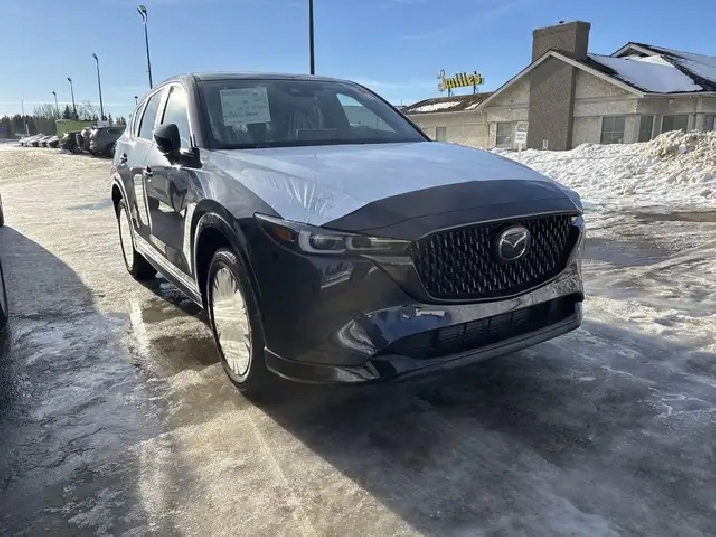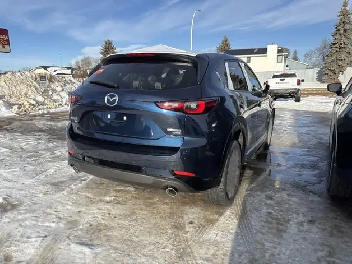 A joy to drive, our 2025 Mazda CX-5 Sport Design AWD radiates refined style in Deep Crystal Blue Mica! Motivated by a 2.5 Liter 4 Cylinder that delivers 256hp tethered to a paddle-shifted 6 Speed Automatic transmission. You can put that strength to good use with the added traction of torque vectoring, and this All Wheel Drive SUV returns nearly approximately 7.8L/100km on the highway. Our CX-5 also has an expressive design with bold details like 19-inch alloy wheels, a rear roof spoiler, and bright-tipped dual exhaust outlets.