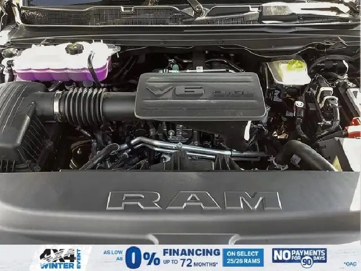 ENGINE: 3.6L PENTASTAR VVT V6 W/ETORQUE (STD), BLACK CLOTH BENCH SEAT -inc: Front Centre Seat Cushion Storage 3 Rear Seat Head Restraints Rear 60/40 Folding Seat Front Seatback Map Pockets, WHEELS: 20 X 9 POLISHED-PAINTED ALUMINUM, QUICK ORDER PACKAGE 23D -inc: Engine: 3.6L Pentastar VVT V6 w/eTorque Transmission: 8-Speed Automatic Tires: 275/55R20 OWL All-Season SIRIUSXM Satellite Radio 6-Month SiriusXM Radio Service For More Info Call 888-539-7474 Black Grille w/Body-Colour Surround Front LED Fog Lamps Rear Power Sliding Window Black Interior Accents Wheels: 20 x 9 Polished-Painted Aluminum Body-Colour Front Bumper Body-Colour Rear Bumper w/Step Pads, TIRES: 275/55R20 OWL ALL-SEASON, 3.21 REAR AXLE RATIO (STD), TRANSMISSION: 8-SPEED AUTOMATIC (STD), ANTI-SPIN DIFFERENTIAL REAR AXLE, BILLET SILVER METALLIC, Tow Hitch, Power Door Locks, Cruise Control, Brake Assist, Heated Mirrors, Bluetooth Connection, Automatic Highbeams, LED Headlights, AM/FM Stereo, Four Wheel Drive, Variable Speed Intermittent Wipers, A/C, Power Mirror(s), Conventional Spare Tire, Automatic Headlights, MP3 Capability, ABS, Bluetooth Connection, 4-Wheel Disc Brakes, Passenger Vanity Mirror, Keyless Start, Intermittent Wipers, Adaptive Cruise Control, Keyless Entry, Vinyl Seats, Privacy Glass, Daytime Running Lights, Split Bench Seat, WiFi Hotspot, Adjustable Steering Wheel, Power Door Locks, Steel Wheels, Auxiliary Audio Input, Lithium Ion Traction Battery, Power Windows, Power Steering, Traction Control, Remote Engine Start, Smart Device Integration, Requires Subscription, Smart Device Integration, Lane Departure Warning, Keyless Start, Remote Engine Start, Power Door Locks, Lane Keeping Assist, Traction Control, Lane Departure Warning, Stability Control, Passenger Air Bag Sensor, Blind Spot Monitor, Power Windows, Front Side Air Bag, Cross-Traffic Alert, Driver Air Bag, Passenger Air Bag, Child Safety Locks, Front Head Air Bag, Back-Up Camera, Rear Head Air Bag, Immobilizer, Front Collision Mitigation, Rear Parking Aid, Tire Pressure Monitor