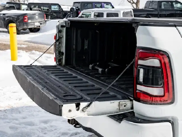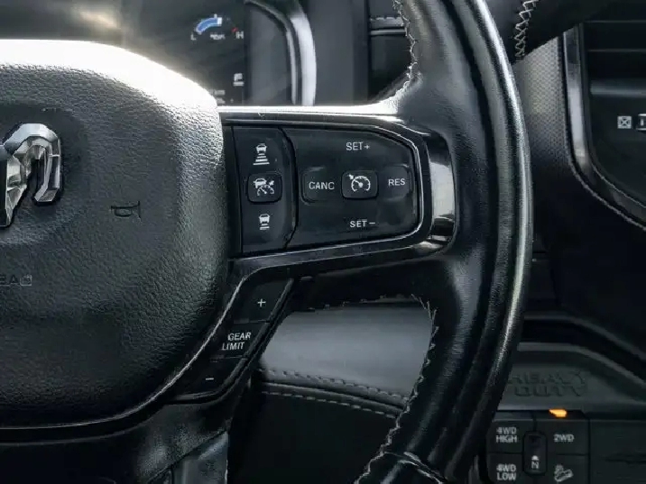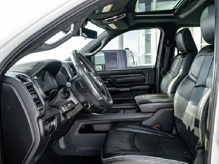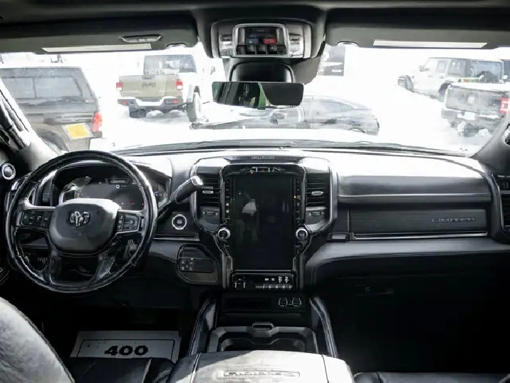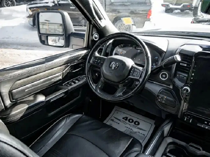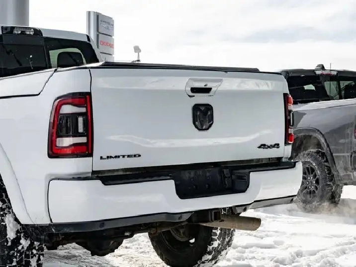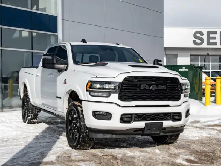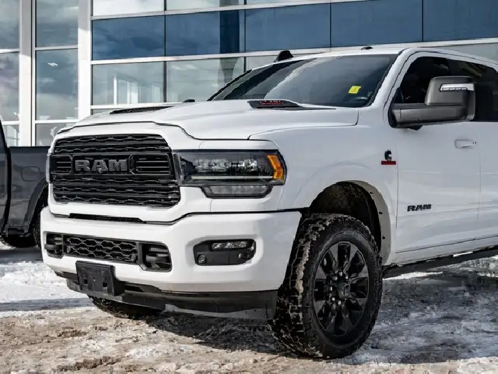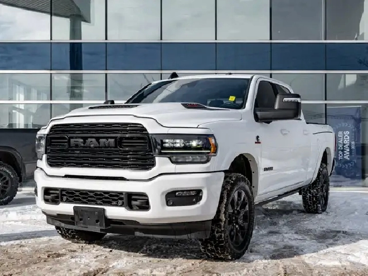 GVWR: 4 490 KGS (9 900 LBS),OFF-ROAD GROUP -inc: Transfer Case Skid Plate Shield Front Performance-Tuned Shocks Hill Descent Control Rear Performance-Tuned Shocks,NIGHT EDITION -inc: Black Exterior Badging Black RAM's Head Tailgate Badge Body-Colour Grille Surround Black Headlamp Bezels Sport Performance Hood Black Limited Grille Wheels: 20 x 9 Black Aluminum Black Wheel Centre Hub Black Taillamp Bezels,ADAPTIVE STEERING SYSTEM,TRANSMISSION: 6-SPEED AUTOMATIC -inc: Leather-Wrapped Shift Knob (STD),BRIGHT WHITE,MOPAR FRONT & REAR ALL-WEATHER FLOOR MATS,ENGINE: 6.7L CUMMINS I-6 TURBO DIESEL -inc: Selective Catalytic Reduction (Urea) Dual 730-Amp Maintenance-Free Batteries Cummins Turbo Diesel Badge Heavy-Duty Engine Cooling Supplemental Heater 220-Amp Alternator MOPAR Winter Front Grille Cover Diesel Exhaust Brake Front Bumper Sight Shields Capless Fuel-Filler (STD),INSTRUMENT CLUSTER,BLACK LEATHER FRONT VENTED BUCKET SEATS,POWER SUNROOF,TRI-FOLD TONNEAU COVER,LIMITED LEVEL 1 EQUIPMENT GROUP -inc: Radio: Uconnect 5 Nav w/12.0 Display Centre Stop Lamp w/Cargo Camera Surround View Camera System LED Bed Lighting Power Deployable Running Boards 12 Touchscreen RamBox Cargo Management System Adaptive Steering System Trailer Reverse Guidance Ramcharger Wireless Charging Pad 4 Adjustable Cargo Tie-Down Hooks Full-Speed Forward Collision Warning Plus MOPAR Spray-In Bedliner 17-Speaker harman/kardon Premium Sound Truck Bed Cargo Divider Adaptive Cruise Control w/Stop Digital Rearview Mirror Lane Keep Assist,WHEELS: 20 X 9 BLACK ALUMINUM,LUXURY DOOR TRIM PANEL (CTH),ANTI-SPIN DIFFERENTIAL REAR AXLE,CENTRE STOP LAMP W/CARGO CAMERA,QUICK ORDER PACKAGE 2HM -inc: Engine: 6.7L Cummins I-6 Turbo Diesel Transmission: 6-Speed Automatic,RADIO: UCONNECT 5 NAV W/12.0 DISPLAY,Turbocharged,Four Wheel Drive,Automatic Highbeams,Daytime Running Lights,Premium Sound System,MP3 Capability,Requires Subscription,Aluminum Wheels,Satellite Radio,Privacy Glass,Power Steering,Bluetooth Connection,Power Door Locks,4-Wheel Disc Brakes,Heated Mirrors,HD Radio,Satellite Radio,Rain Sensing Wipers,Tow Hooks,ABS,Power Mirror(s),Intermittent Wipers,Requires Subscription,Auxiliary Audio Input,Tires - Front All-Terrain,Brake Assist,Integrated Turn Signal Mirrors,Power Folding Mirrors,Navigation System,Tires - Rear All-Terrain,Conventional Spare Tire,Tow Hitch,Variable Speed Intermittent Wipers,LED Headlights,Automatic Headlights,Premium Sound System,Steering Wheel Audio Controls,Rear Defrost,Fog Lamps,HD Radio,Mirror Memory,Seat Memory,Auto-Dimming Rearview Mirror,Traction Control,Cruise Control,Rear Bench Seat,Climate Control,Power Windows,Mirror Memory,Leather Seats,Tire Pressure Monitor,Leather Steering Wheel,Passenger Illuminated Visor Mirror,Driver Vanity Mirror,Keyless Entry,Driver Air Bag,Child Safety Locks,Cooled Front Seat(s),Requires Subscription,Power Door Locks,Keyless Start,Floor Mats,Cross-Traffic Alert,Power Windows,Power Door Locks,Universal Garage Door Opener,Bluetooth Connection,Front Head Air Bag,Multi-Zone A/C,Smart Device Integration,Seat Memory,Heated Steering Wheel,Adjustable Pedals,Rear Parking Aid,Traction Control,Smart Device Integration,Stability Control,Keyless Entry,Driver Illuminated Vanity Mirror,Remote Engine Start,Passenger Air Bag,Trip Computer,Pass-Through Rear Seat,Passenger Air Bag Sensor,Driver Adjustable Lumbar,Trip Computer,A/C,Immobilizer,Bucket Seats,Back-Up Camera,Driver Adjustable Lumbar,Keyless Start,Adjustable Steering Wheel,Woodgrain Interior Trim,Power Door Locks,Passenger Vanity Mirror,Passenger Adjustable Lumbar,Power Driver Seat,Heated Rear Seat(s),WiFi Hotspot,Heated Front Seat(s),Remote Engine Start,Blind Spot Monitor,Navigation System,Power Passenger Seat,Power Driver Seat,Front Side Air Bag,Smart Device Integration,Power Passenger Seat,Rear Head Air Bag,Security System